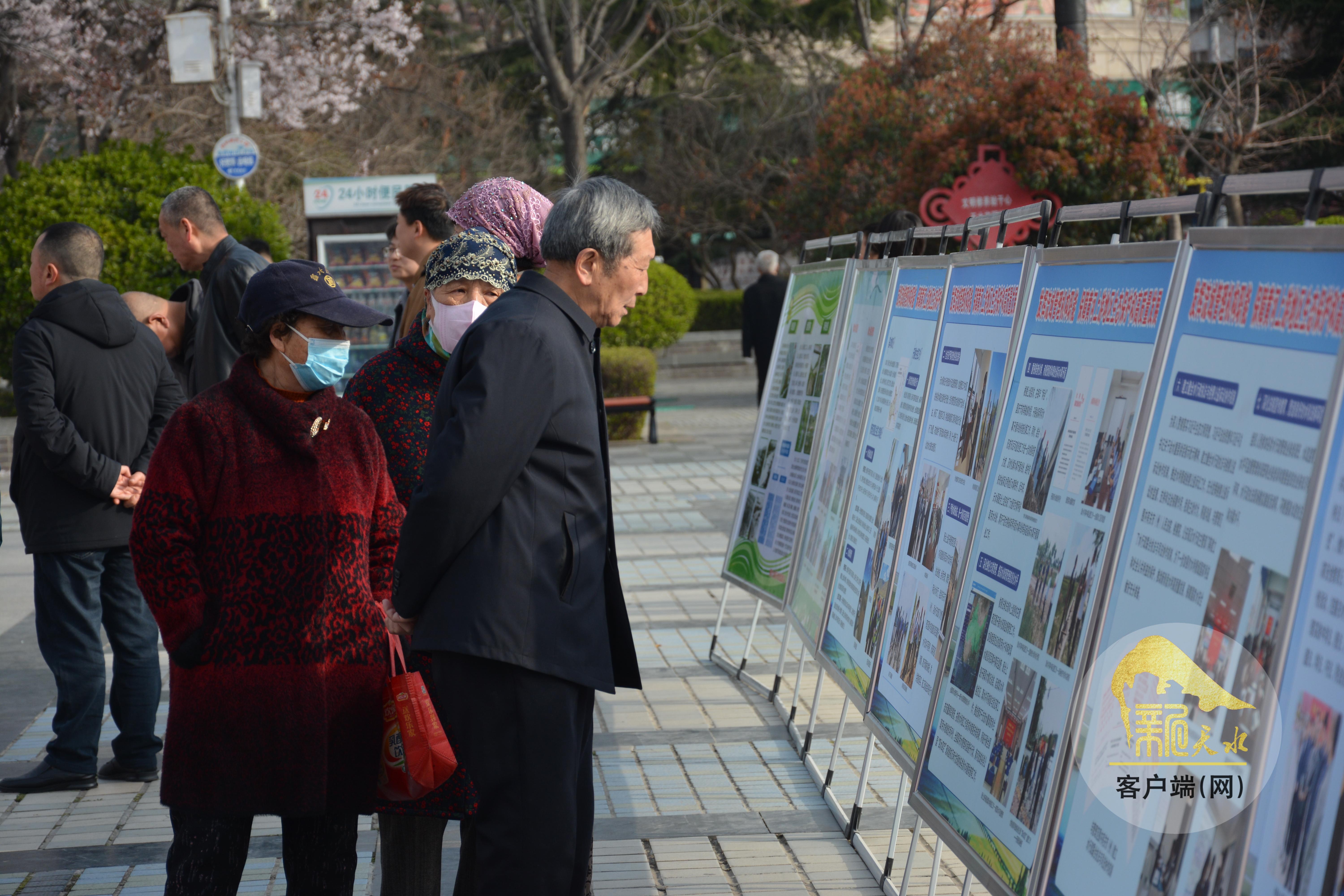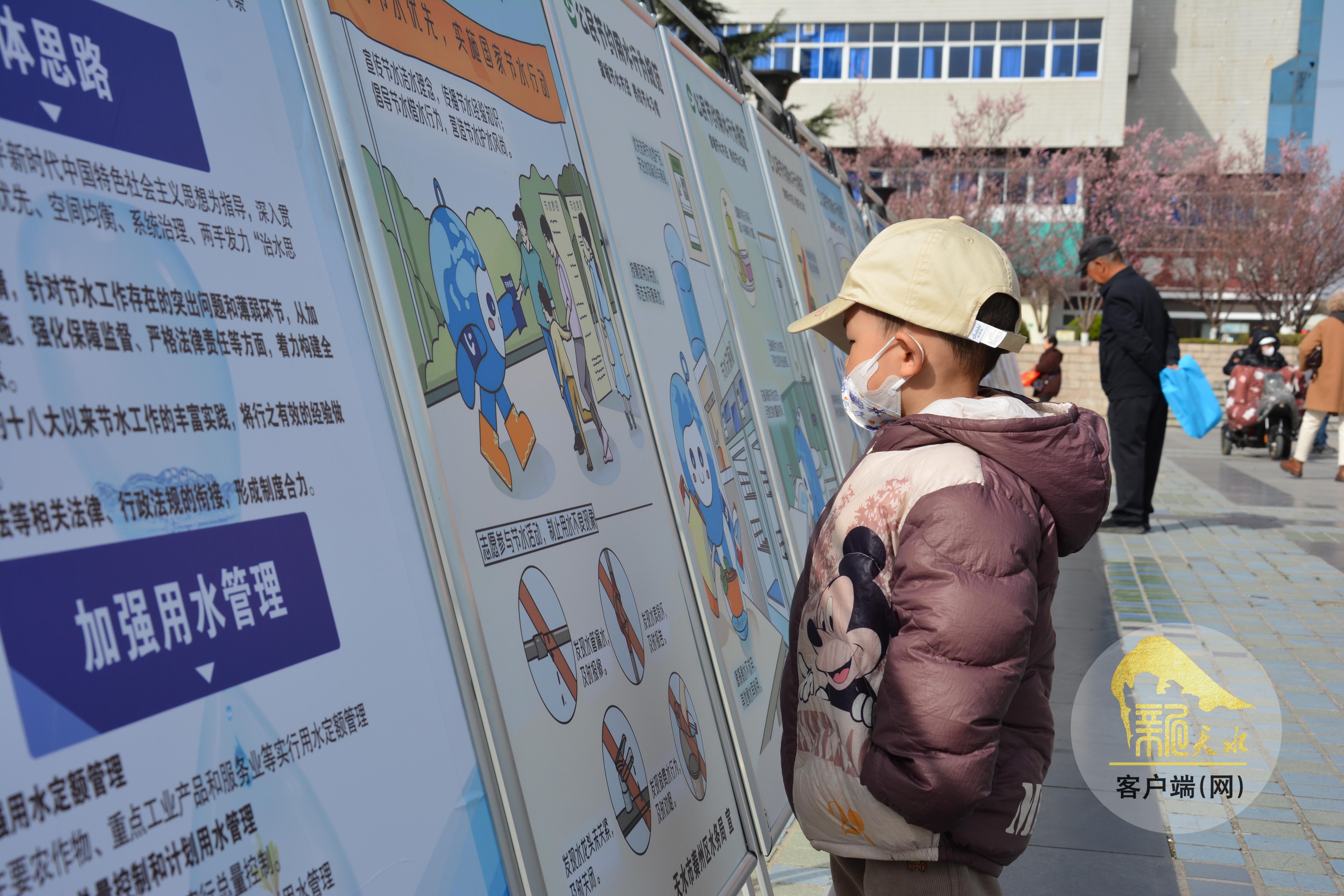 一幅幅图片、一张张图表,通过展板直观呈现着天水市近年来在防洪减灾、供水保障、生态治理等领域的重点项目与发展成果,吸引不少群众交流讨论。“水资源来之不易,我们每个人都要从身边小事做起,节约用水、保护水资源。”市民王娜说。