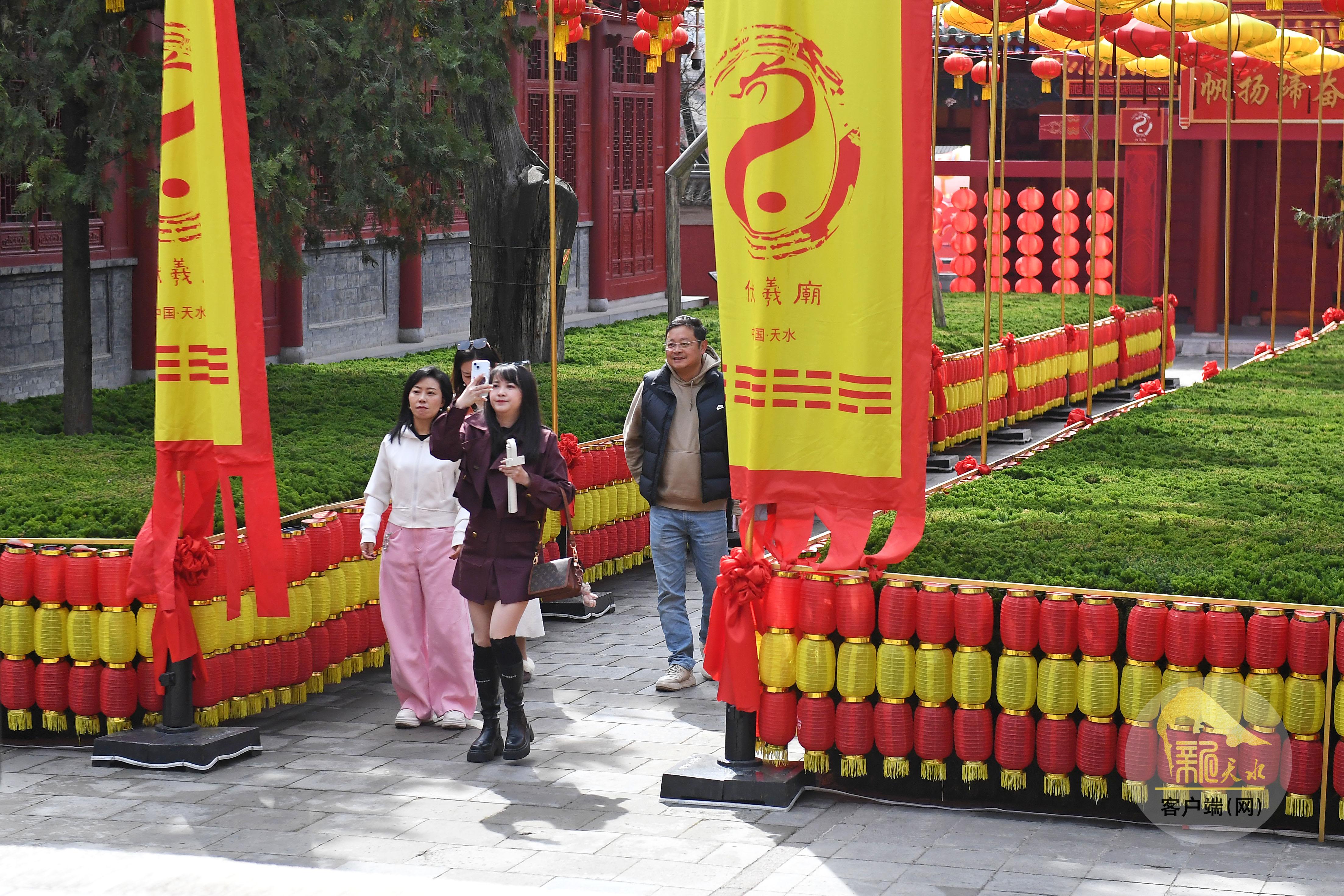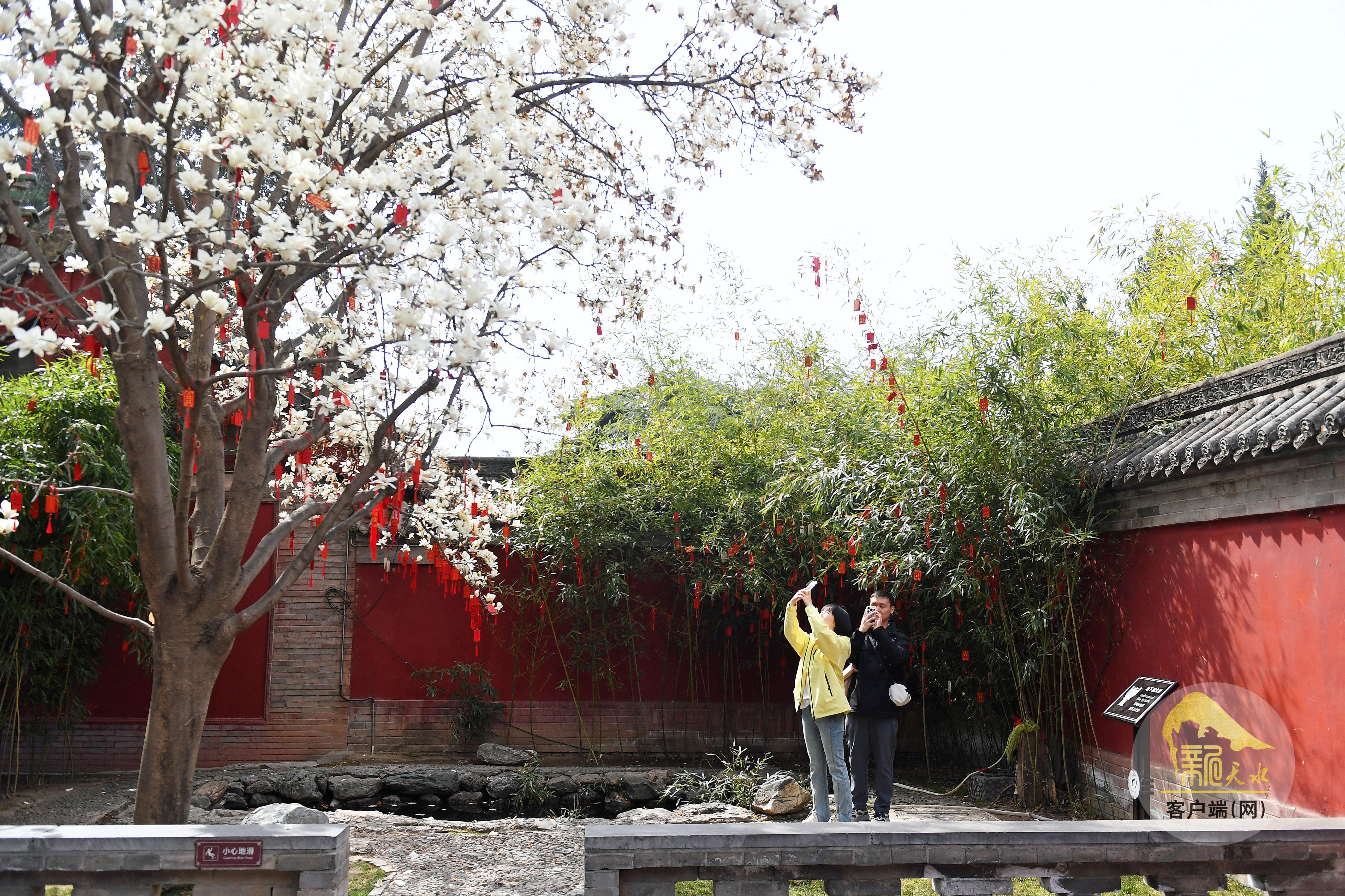 仲春时节,天气渐暖,百花盛开。游客们或在天水伏羲庙、天水市博物馆、南宅子民俗博物馆游览,或在城区街道的满树春花下驻足拍照。随着清明假期的临近,天水旅游市场逐渐升温。(天水融媒记者 孙镇 摄)