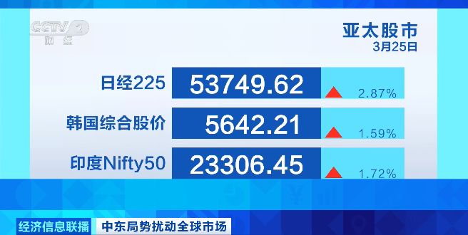 受乐观情绪推动,25日亚太股市普遍反弹。截至收盘,日本日经225指数上涨2.87%;韩国综合股价指数上涨1.59%;印度Nifty50指数上涨1.72%。