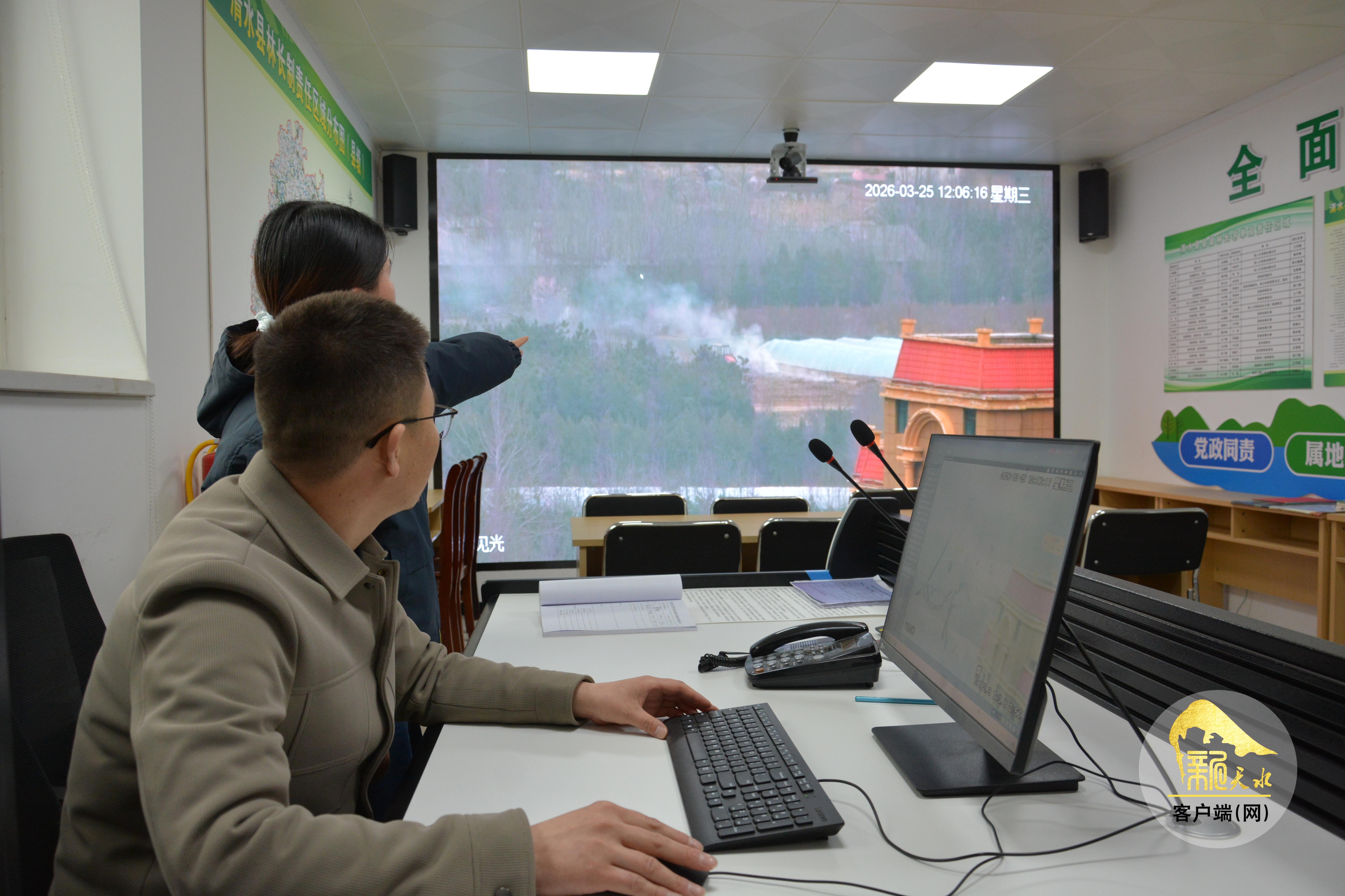 科技赋能让森林防火更高效。在清水县自然资源局森林草原防灭火智能监控中心,每天2名工作人员紧盯实时监控画面,24小时值守待命。一旦发现火情,立即上报领导研判,快速通知护林员赶赴现场处置,针对林场区域,还会出动无人机精准定位火源位置,为护林员现场处置指引方向。目前,全县已建成11个护林防火监控点,单个监控覆盖半径5公里,后续将新增11个监控点位,建成后全县森林防火监控覆盖率将突破70%。依托“地面人员巡、远程监控查、天空无人机防”的“三位一体”巡护模式,清水县实现了人防与技防深度融合,大幅提升了火情发现与处置效率。