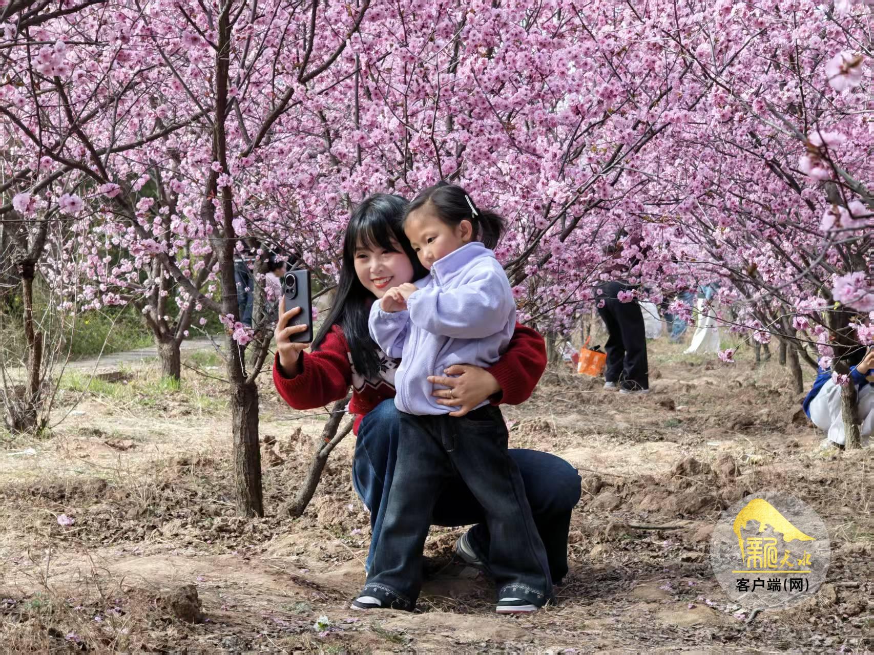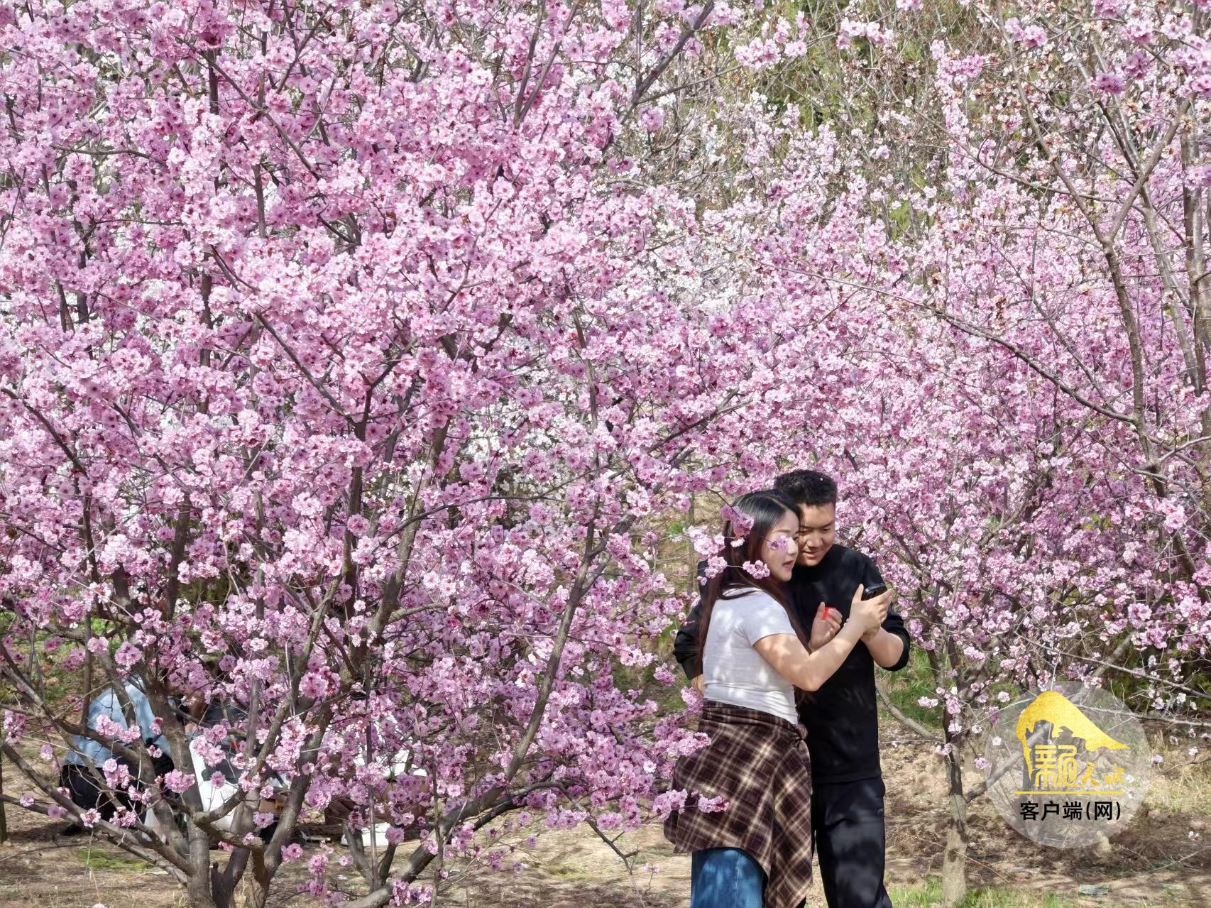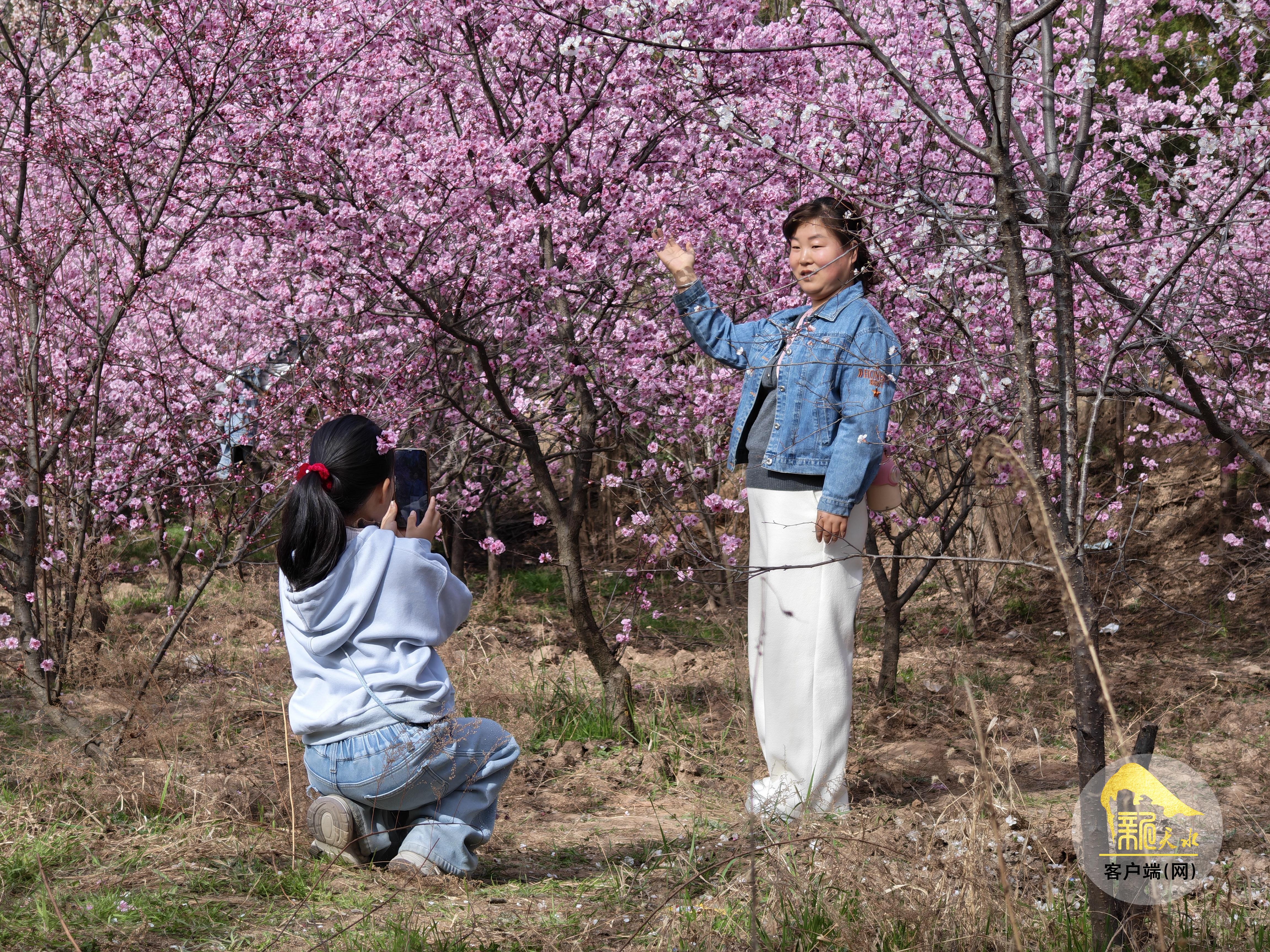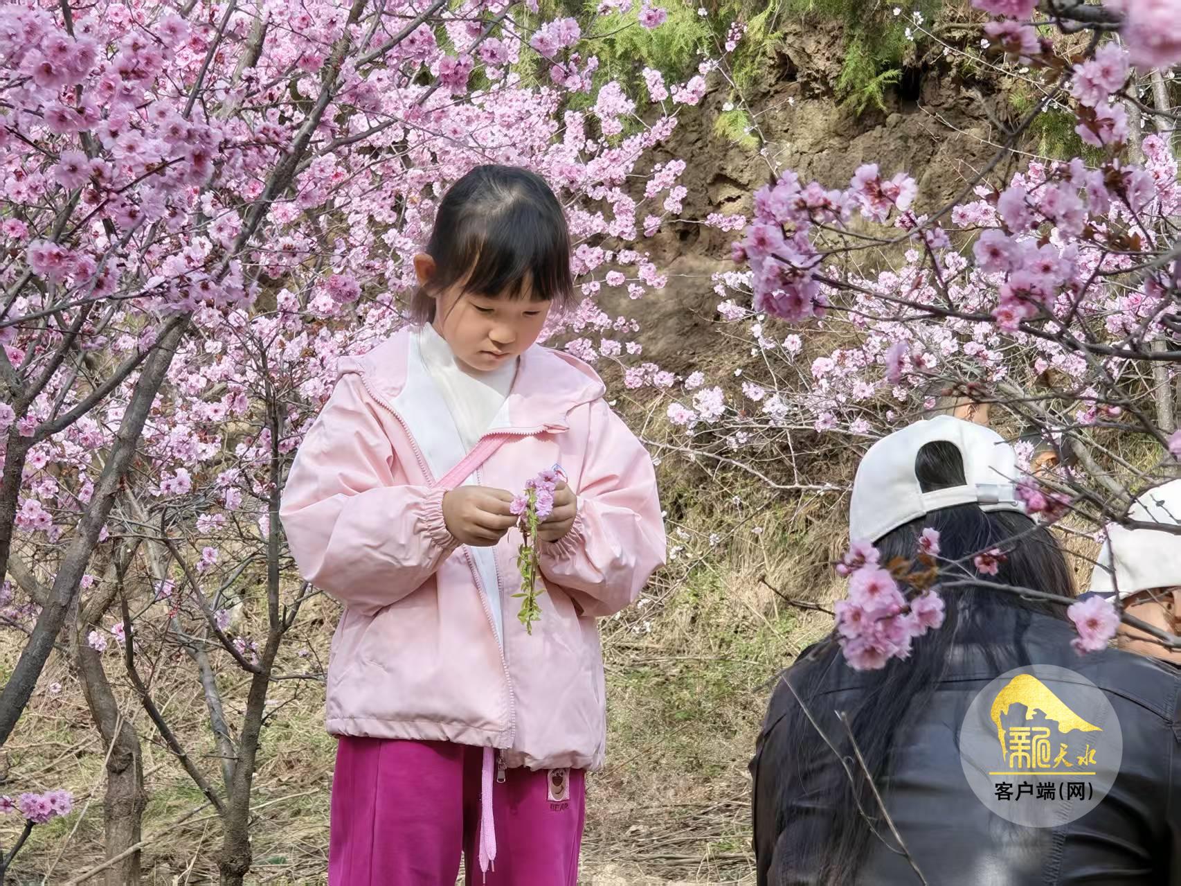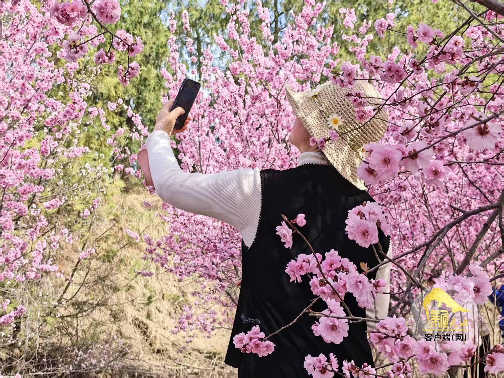 近日,秦州区豹子沟植物园里的美人梅盛开,近看粉红的花瓣层叠簇拥,远眺红云如烟似雾,美不胜收。