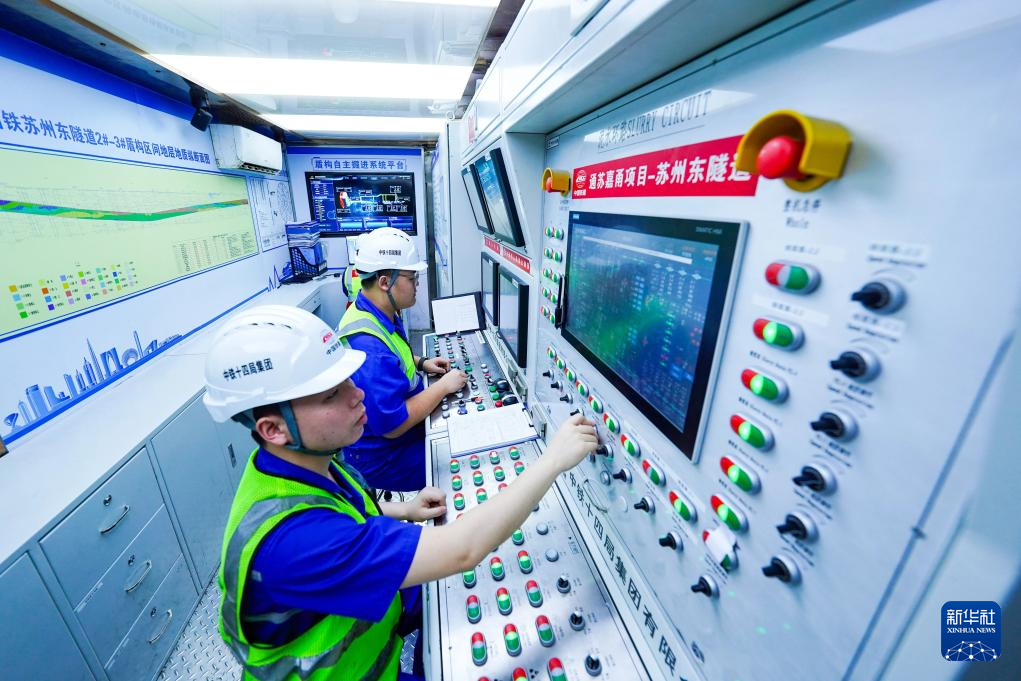 3月30日,中铁十四局项目盾构机长驾驶盾构机推进第5000环掘进任务。新华社发(林凤 摄)