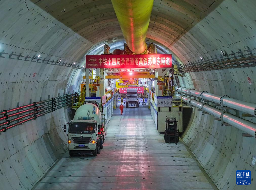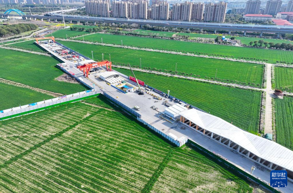 3月30日拍摄的通甬高铁苏州东隧道“通甬园梦号”盾构机掘进现场(无人机照片)。新华社发(曹东森 摄)
