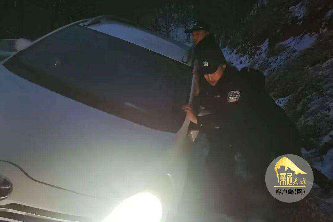 【创建全国文明城市】外地车辆雨天被困水渠 清水民警暖心施救