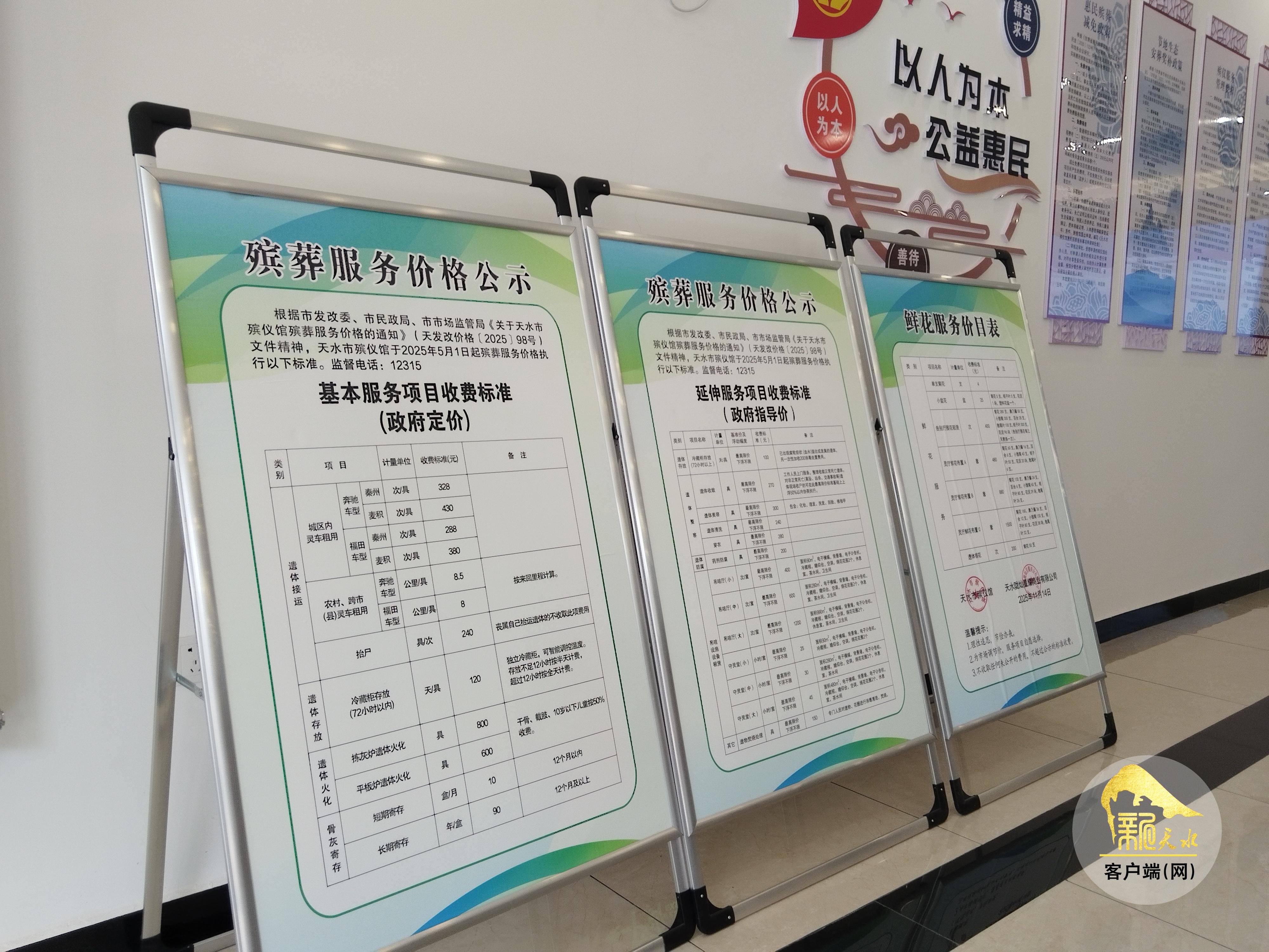 “为进一步加强和规范殡葬服务管理,保障全市群众基本殡葬服务需求,清晰界定殡葬服务项目内容、价格管理形式及收费标准,根据市场监管、民政等部门的要求,我们不仅在殡仪馆醒目位置对殡葬服务价格进行了公示,还在网络上进行了公示,主动接受社会监督。”天水市殡仪馆馆长杨君明告诉记者,“在去年取消消毒等收费项目的基础上,今年又降低了吊唁厅租赁和遗体美容收费标准,免费开展葬礼主持和休息室等服务项目,以实实在在的举措减轻群众经济压力,彰显公益为民初心。”