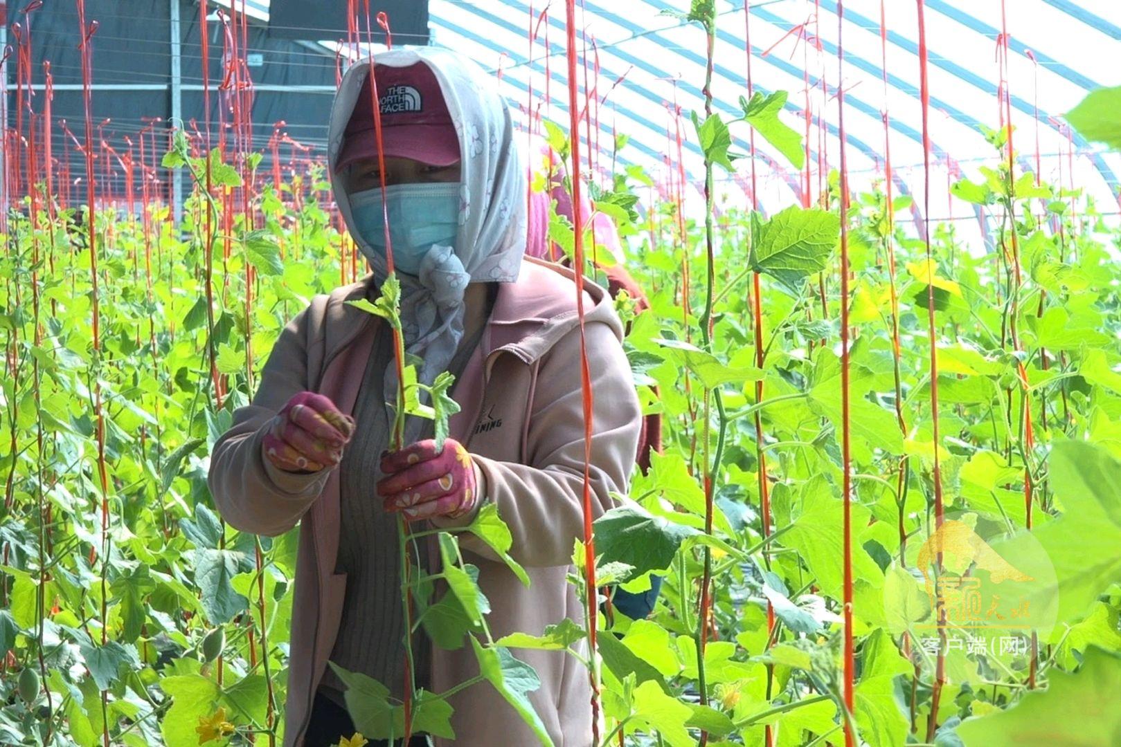 走进磐安镇谢家坪村设施农业大棚,一股温润的暖意扑面而来,连片的网纹瓜藤蔓郁郁葱葱、生机勃勃,在支架的牵引下有序舒展,每一根藤蔓上都承载着丰收的希望。大棚内,工人们分工明确、忙碌有序,分散在田间垄间,手持工具娴熟地进行绑藤固蔓、整枝打叉、疏叶理藤等管护作业,每一个动作都细致入微,用精心照料为网纹瓜的优质生长保驾护航。