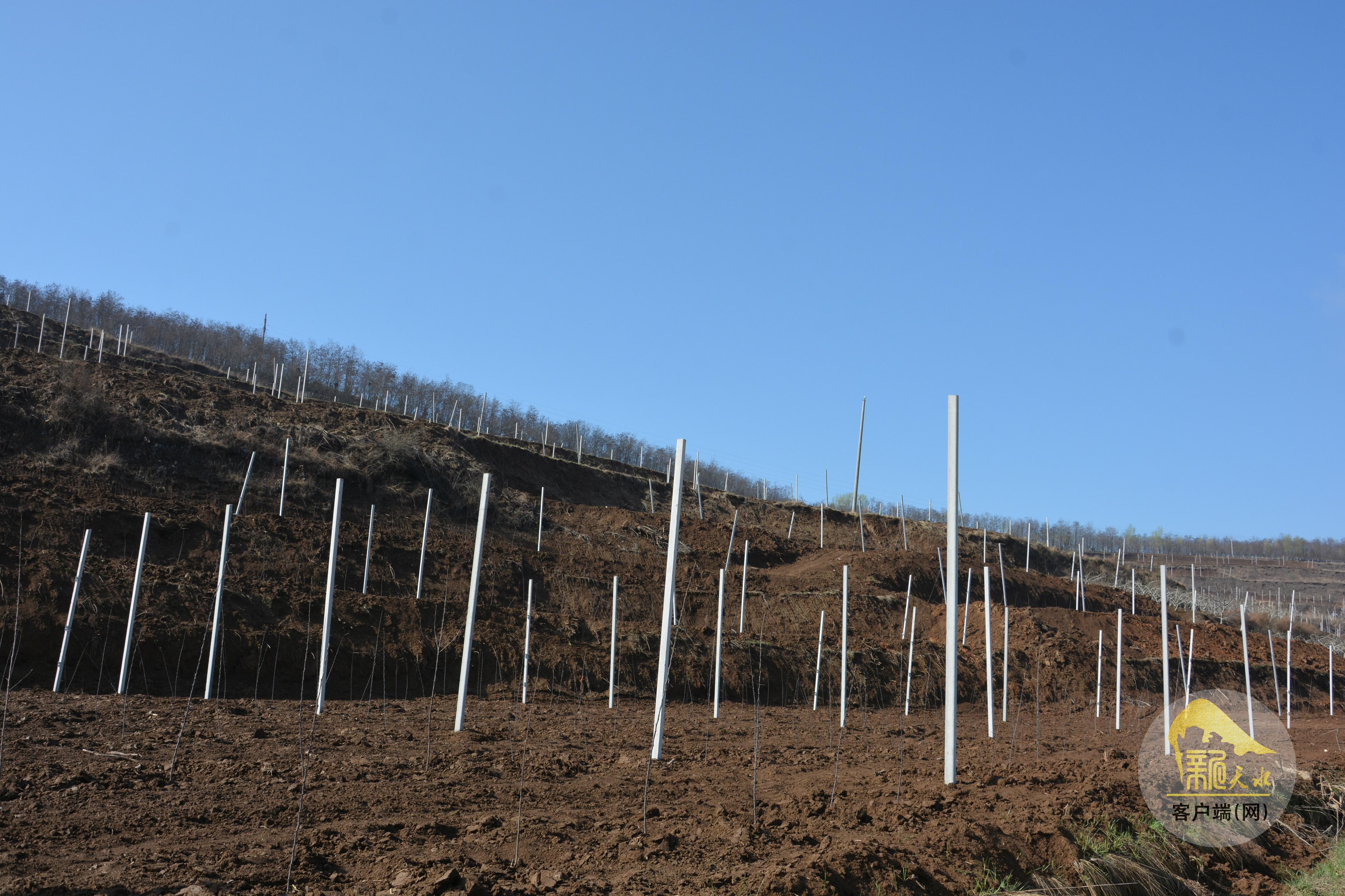 “我今年在这个点种了18亩,两个品种,一个是‘马斯特红蛇’,不用套袋,管理省心;另一个是‘秦脆’,口感好,属于富士系列。”说起未来,郭保林信心百倍,“现在支架栽上了,树苗也栽好了,后期把施肥、管理跟上,两到三年就能挂果丰产。”