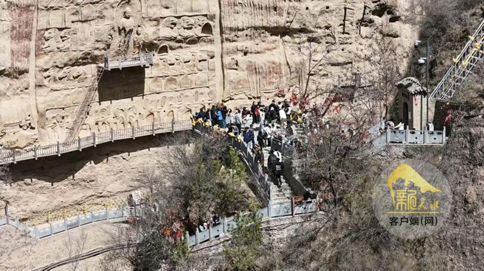 新天水讯 天气晴朗,春风送暖,清明假期期间,2026“陇上菜都·大福武山”文旅嘉年华踏春迎福系列活动在天水市摩崖石窟文化旅游区火热开展,景区内游人如织、人山人海,处处洋溢着浓郁欢快的春日假期氛围。