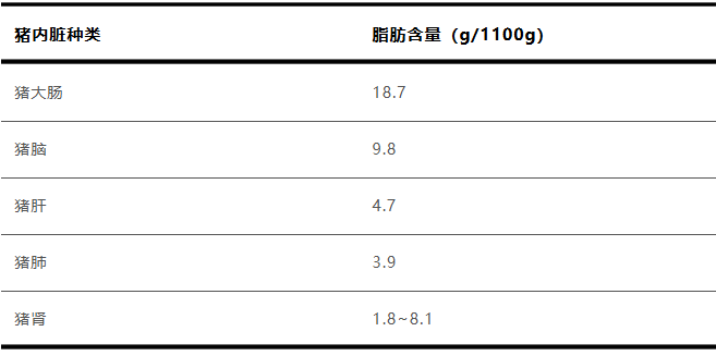 由表可以看出,猪脑的脂肪含量是猪肺和猪肝的2倍以上。因此,它在猪内脏里算是高脂选手。