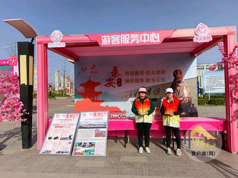 文明服务“志愿红”,传递秦安待客温度。依托“1+8+N”志愿队伍建设体系,秦安县组建了多支专项志愿服务队。在城区主干道出入口和高铁站,志愿者为外地游客提供引导服务,耐心讲解桃花会观赏路线、大地湾博物馆等旅游景点及停车美食信息;在景区核心区域,志愿者设立便民服务点,开展信息咨询、路线指引、文明劝导等服务。同时,志愿者将文明风尚融入服务一线,开展理论宣讲、政策解读、文明赏花劝导等活动,引导游客爱护花木、文明游览,让文明之花与灼灼桃花共同绽放;县镇村及相关部门多级联动、同向发力,志愿者以饱满的热情投身于服务一线,让远道而来的客人在秦安吃得放心、玩得开心、游得舒心。