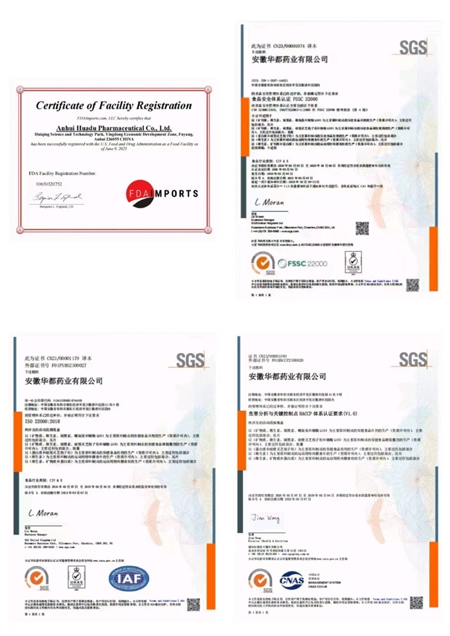 本品源自知名药企生产线,执行制药级品控标准。企业持有全球邓白氏编码(DUNS#:406126027),供应链全程可追溯;通过美国FDA认证(批准文号:10650320752),斩获FSSC 22000、ISO22000食品安全体系及HACCP危害分析关键控制点认证;经SGS全球领先检测机构多项安全验证。GMP标准车间生产,原料、过程、成品三重质检,重金属残留与油脂氧化值远低于国标,零防腐剂、人工色素、激素及常见致敏原,老人、儿童及敏感体质均可长期服用。