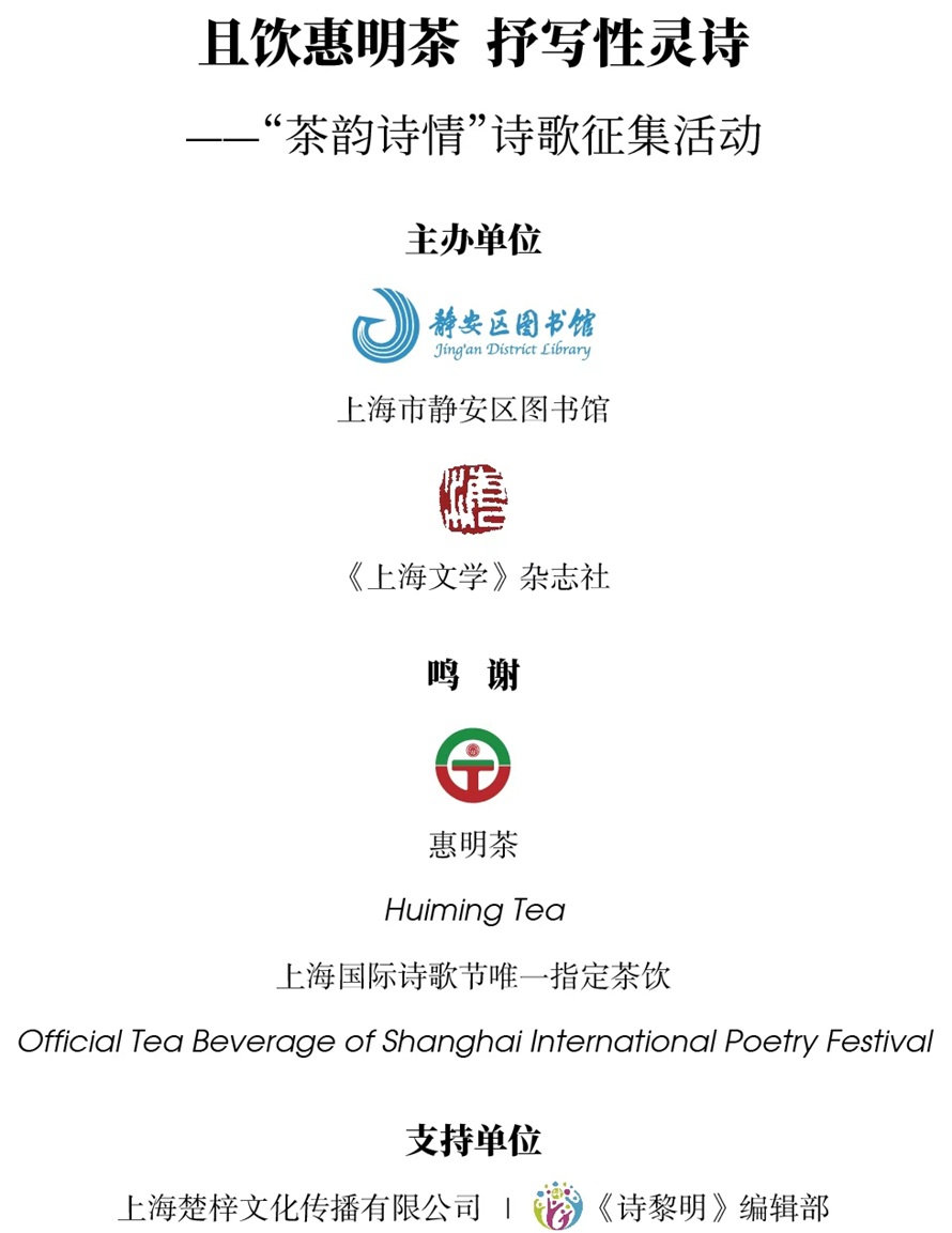 为传承和弘扬中华茶文化,挖掘茶文化的精神内涵,以诗歌之美诠释茶之韵味,让更多人感受茶文化与诗歌艺术交融的独特魅力,静安区图书馆与《上海文学》杂志社携手举办“茶韵诗情”诗歌征集活动,诚邀全国诗歌爱好者以笔为媒,以诗咏茶,共绘茶与诗的美好画卷。
