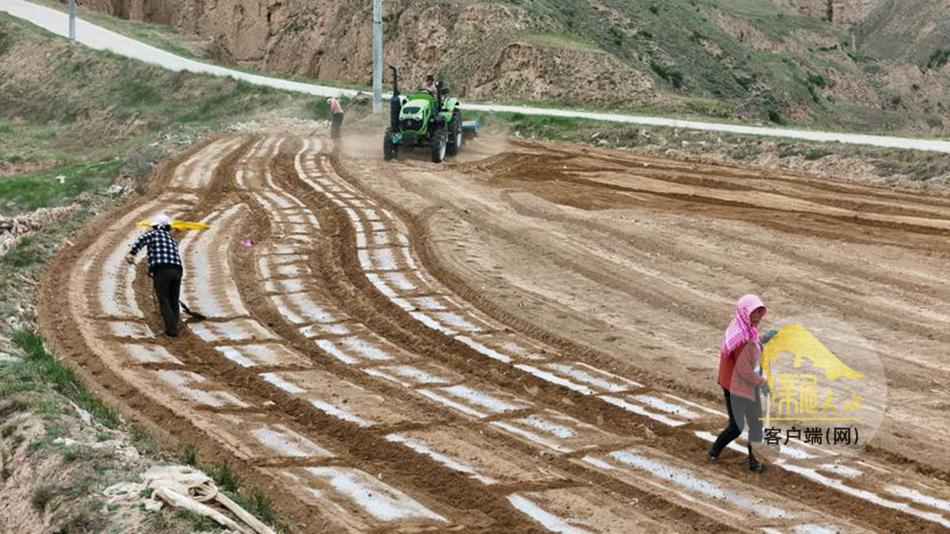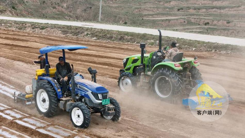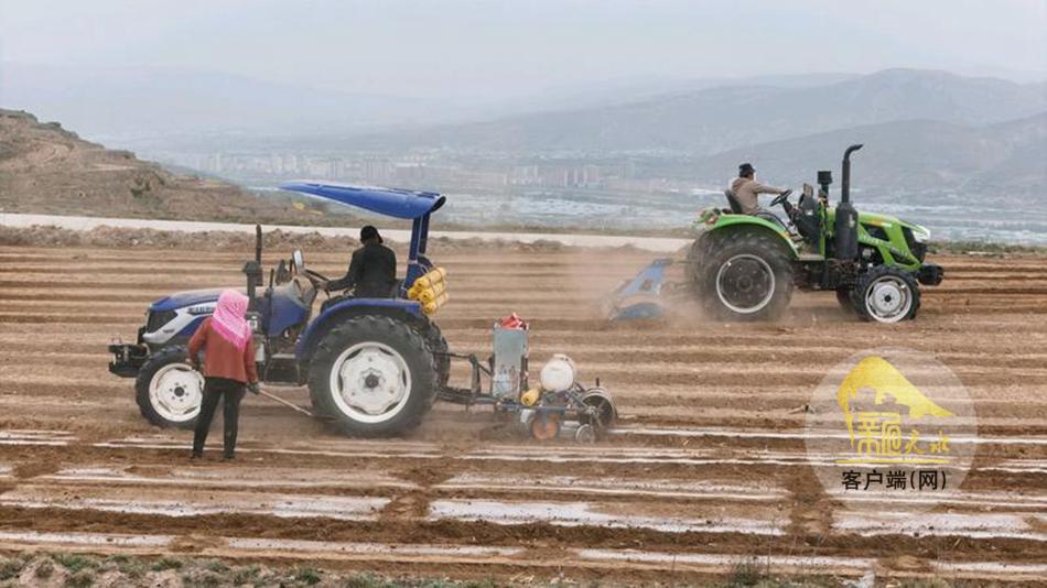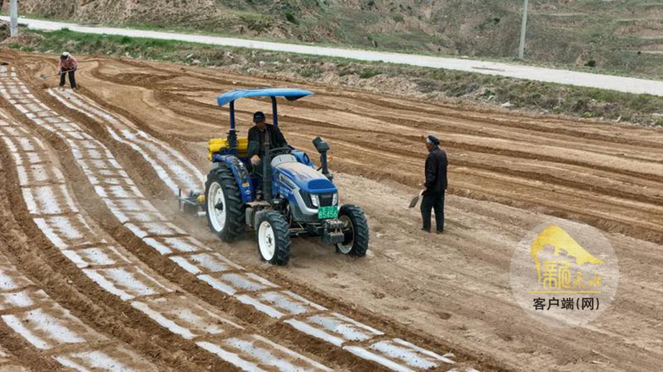 新天水讯【天水融媒通讯员何慧 王正平 管秋勇】时下正值春耕生产的关键期,在武山县城关镇北山千亩大豆玉米带状复合集中连片种植示范田里,大型机械来回穿梭,铁犁翻起黝黑湿润的新土,覆膜机匀速前行,银白的地膜如缎带般连片铺展,为大地披上“春装”。群众俯身劳作,弯腰培土,一幅生机盎然的春耕画卷正徐徐铺展。