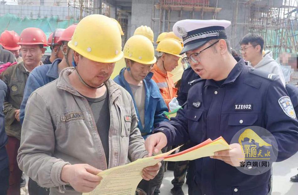 张家川县公安交警:交通宣传进工地 护航职工安全路