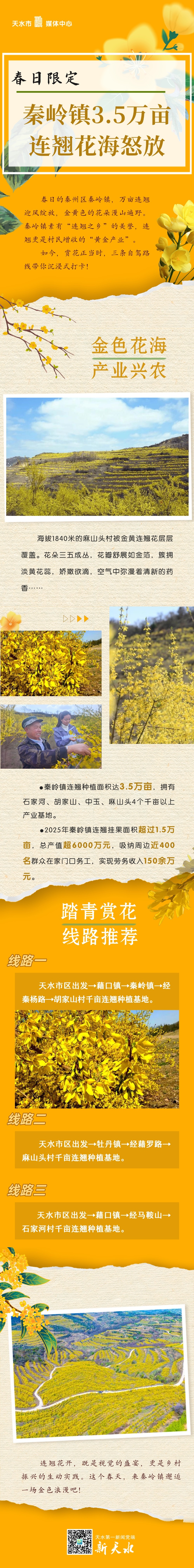 长图|春日限定!秦州区秦岭镇3.5万亩连翘花海怒放