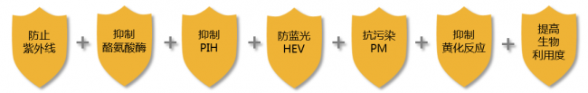 •全链路:7级方程式覆盖7个作用靶点:改善紫外线导致的变黑、抑制酪氨酸酶的活性、抑制黑色素的转运、改善刺激因子导致的色沉、减少环境因素带来的色斑、减少糖基化带来的皮肤黄化、增强活性成分的透皮吸收效果。从源头抑制到加速代谢形成完整闭环