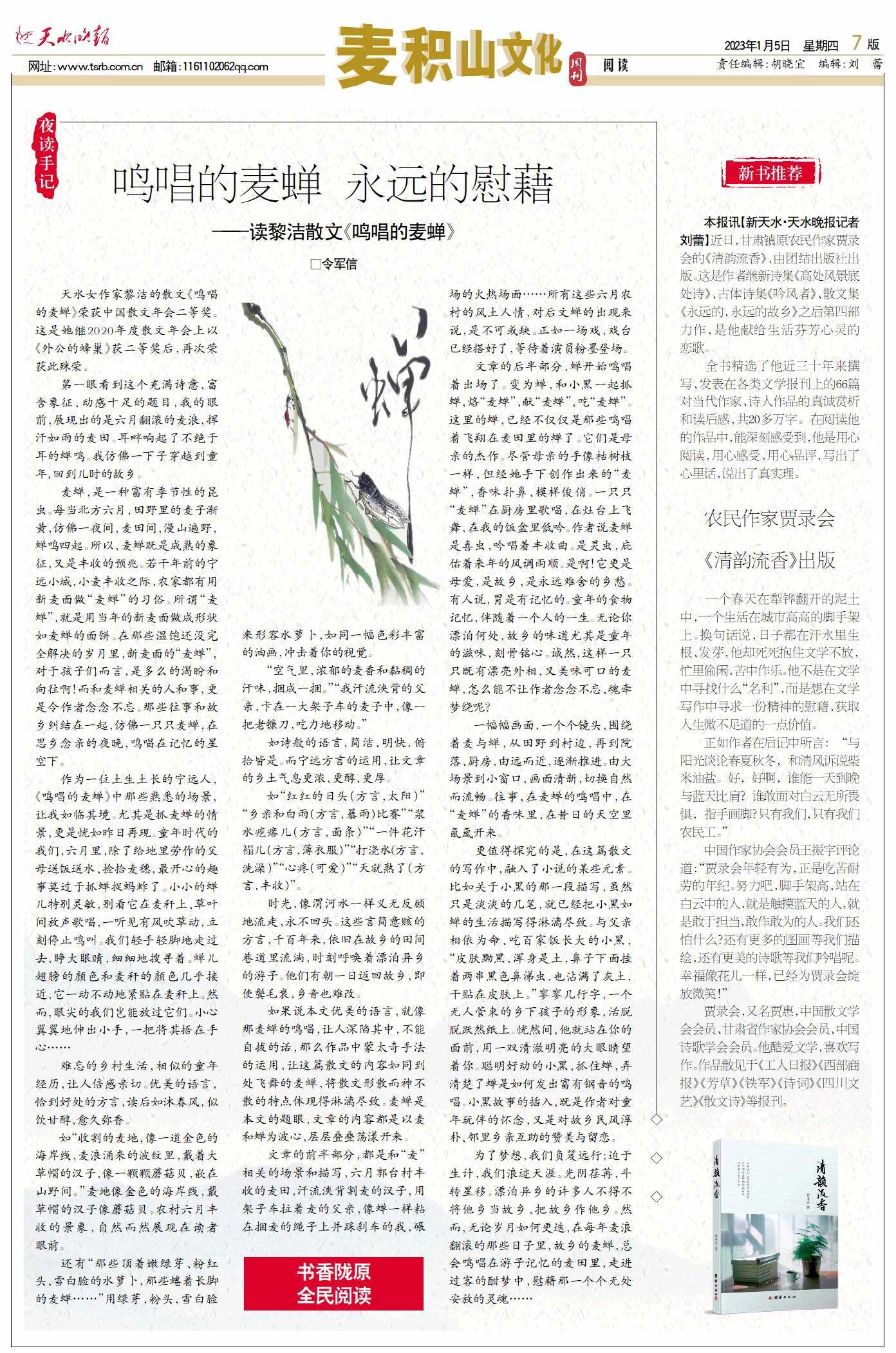 【书香陇原 全民阅读】鸣唱的麦蝉 永远的慰藉——读黎洁散文《鸣唱的麦蝉》
