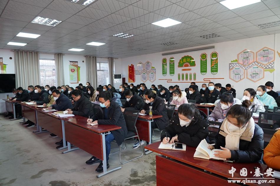 新天水讯 据秦安县融媒体中心消息 1月9日,学习贯彻党的二十大精神秦安县委宣讲团宣讲报告会在刘坪镇举行,县委常委、宣传部部长常乐作宣讲报告。刘坪镇班子成员、镇村干部聆听了宣讲报告。