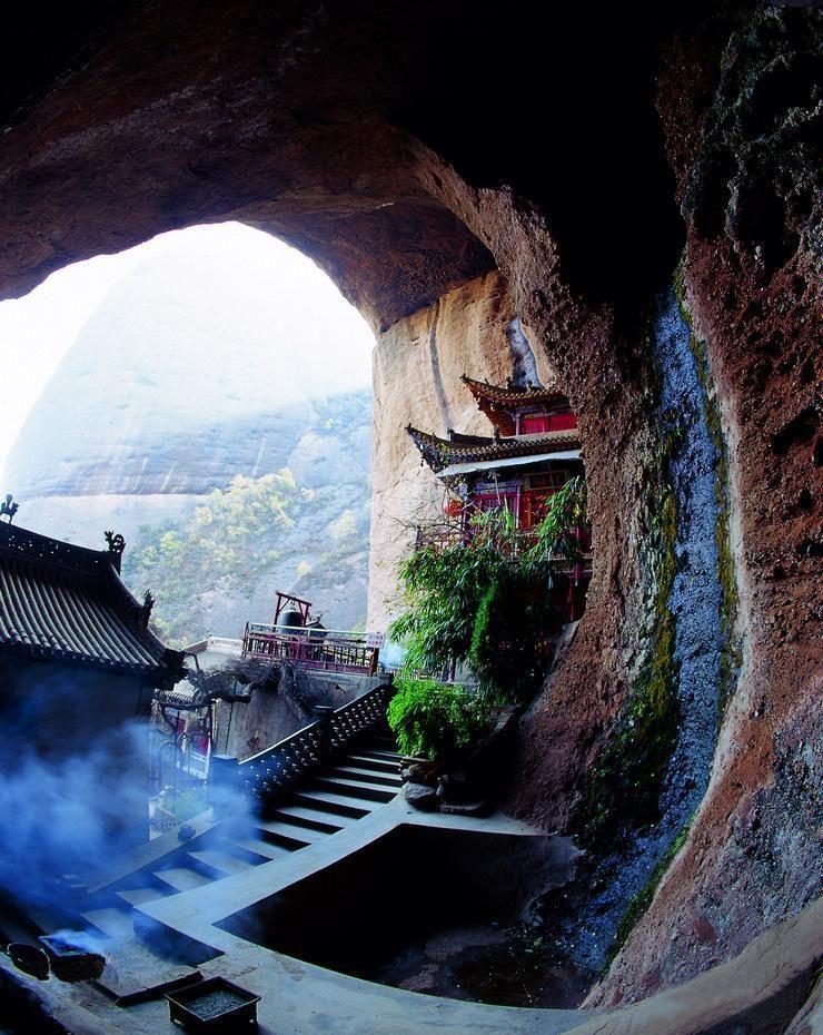 水帘洞高约50米、深20多米,为一巨大的天然岩洞,洞前绿树成荫,洞顶、洞壁皆有泉水从石缝淌下,形成了一道巨大的水帘,摸子泉即在洞内。正殿菩萨楼内塑有大势至菩萨,清相丰润,气度娴雅,相传为麻线娘娘的真身塑像。相传很早以前,榆盘镇李家沟村有一女孩没事总到庙里去玩,15岁的时候,家里给她许配了人家,可自此后她便总是坐在窗口打麻绳,一直打了几年,直到出嫁时还在不停打麻绳。出嫁这天,她打扮了一个早晨后,便把麻绳的一头系在窗子上,一头系在自己的腰里跑了起来。全家人急了,妈妈拿着火棍子,哥哥拿着鞭子,嫂嫂拿着笤刷子追来,她便一直往水帘洞跑去。当跑到一个山沟里时,绳子用完了,她就抽出肠子续上继续跑,从此这个地方就叫徐家来(“徐、续”音相近)。一直跑到水帘洞后,她身子一纵跳入洞中,但没有坐稳,一条腿还没来得及收上去,家人便已赶到。家人问她:“你如果是神,就让火棍和笤刷子长出叶子来。”果然,话音刚落,那火棍儿、笤刷子便都长出了叶子,长成了树,麻线女也成了麻线娘娘。