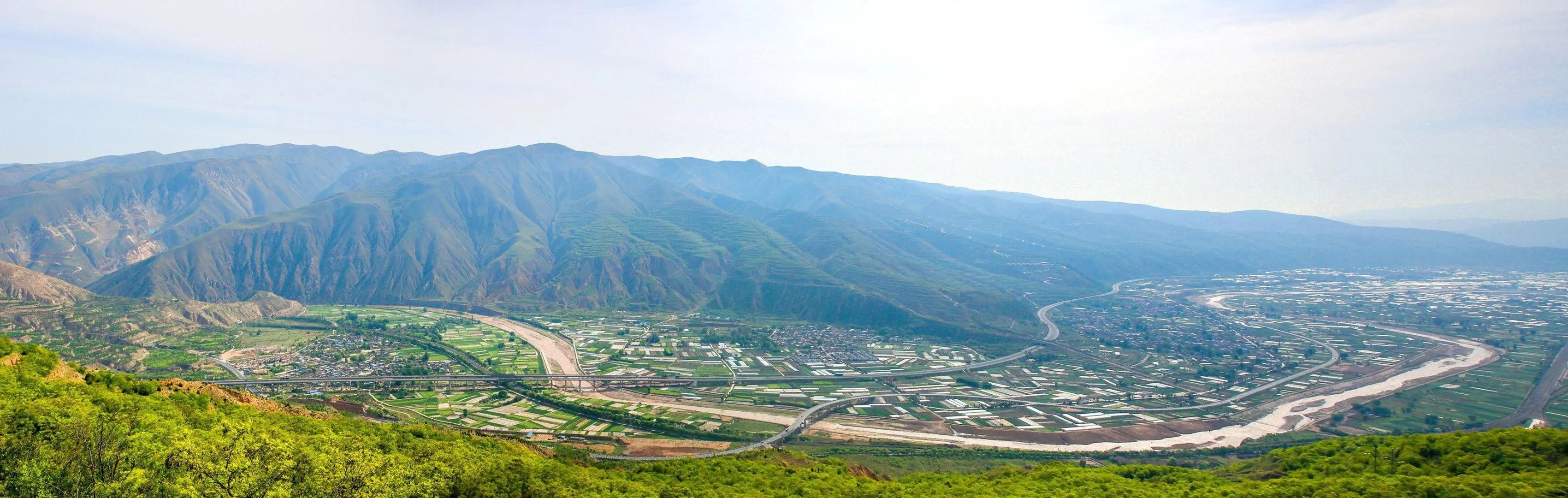 广武坡略细,是龙脖子,原先的国道,是缠在龙脖子上的丝带。站在龙脖子上,向西,能看到桦林镇,向东,能看到洛门镇,向南偏西一点,很远的地方,半天里林立秀峰中隆起一座绿色城堡,是铁笼山。龙脖子东侧山梁上,建有泰山庙,听说是陇西人建的。龙背西前肩弯里,塌方了一片,曾出土过石柱、石墩等物,是泰山庙旧址。泰山庙旧址下方,是水流湍急的榜沙河汇入渭河处,河谷开阔,有广武村与颉家门村,三国时的新兴县址,就位于两村之间。