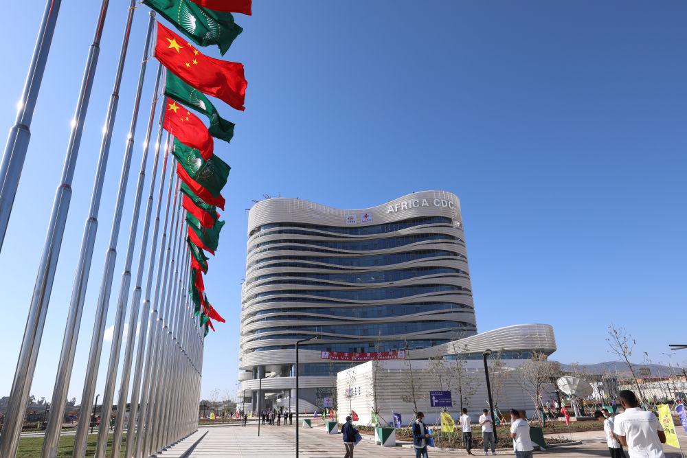 今年1月11日,在埃塞俄比亚首都亚的斯亚贝巴南郊,中国援建的非洲疾控中心总部附近车水马龙,非盟会旗和中国国旗在蓝天白云下迎风飘展,印有“中非友谊长存”的横幅高挂在总部大楼外。当天,中国援非盟非洲疾病预防控制中心总部(一期)项目举行了竣工仪式。