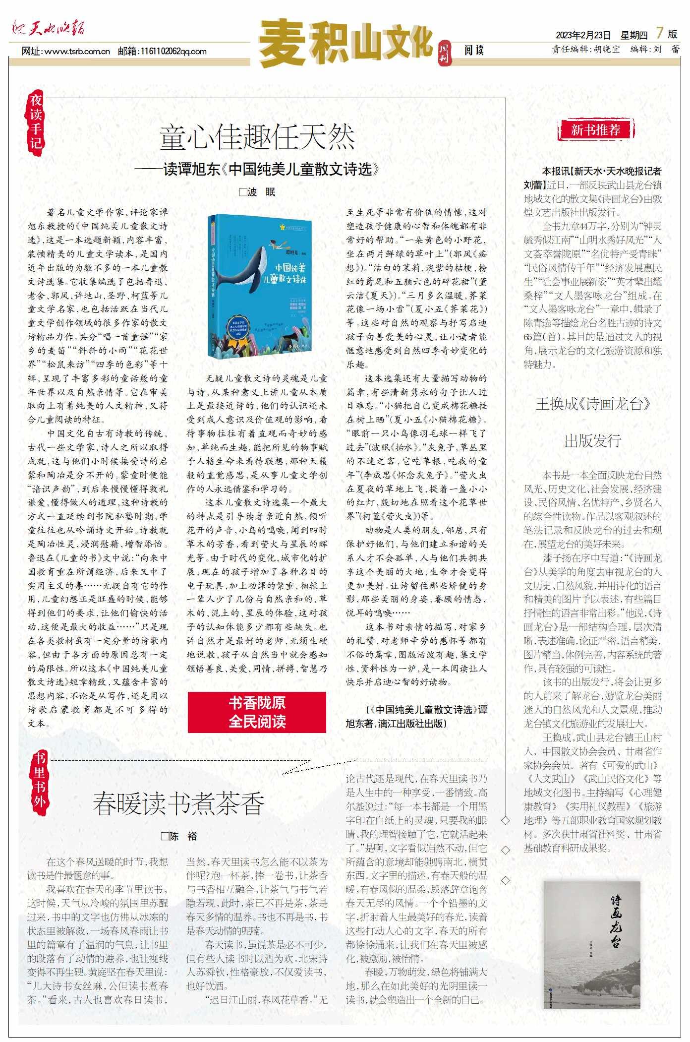 新天水讯【记者刘蕾】近日,一部反映武山县龙台镇地域文化的散文集《诗画龙台》由敦煌文艺出版社出版发行。
