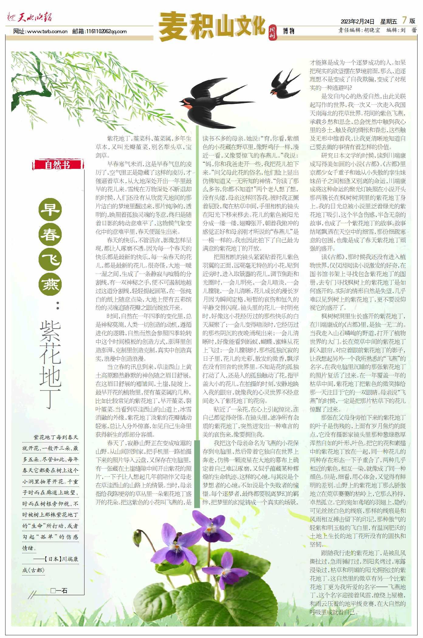 是发自内心的热爱自然,由此关联起写作的世界,我一次又一次走入我国天南海北的花草世界。花间的紫色飞燕,承载乡愁和思念,总会恍然中触到我心里的乡土,触及我的惆怅和眷恋,这些触及无形中推着我,让我更清晰地知道自己要去做的事情有着怎样的价值。