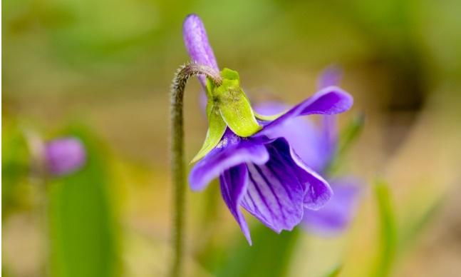 把照相机的镜头紧紧贴着花儿紫色羽翼的正面,远观毫无特色的小花,贴到近旁时,进入取景器的花儿,调节焦距和光圈时,一会儿明亮,一会儿暗淡,一会儿朦胧,一会儿清晰,花儿成长的漫长岁月因为瞬间定格,短暂的哀伤和恒久的平静交替闪现。镜头里的花儿一时明亮时,好像这小花经历过的那些快乐的白天凝聚了;一会儿变得暗淡时,它经历过的那些阴沉的夜晚涌现出来;一会儿清晰时,好像能看到蚂蚁、蝴蝶、蜜蜂从花上飞过;一会儿朦胧时,那些孤独沉寂的日子里,花儿的光彩,散发的微香,飘浮在没有回音的世界里。不知是花的孤独打动了人,还是人的孤独触动了花,指甲盖大小的花儿,在拍摄的时刻,安静地映入我的眼帘,就像我的心灵世界不经意间走入了紫花地丁的花房。