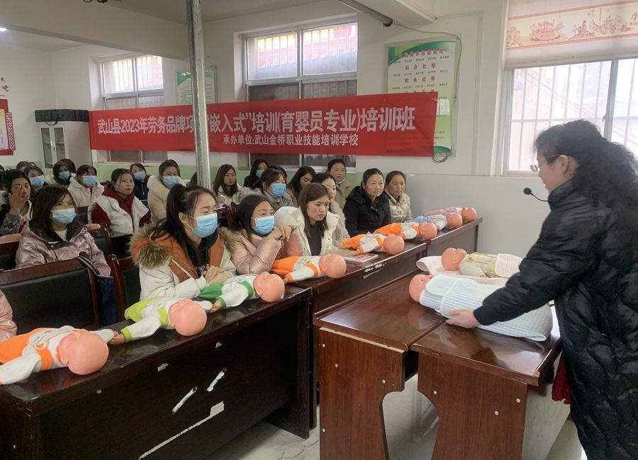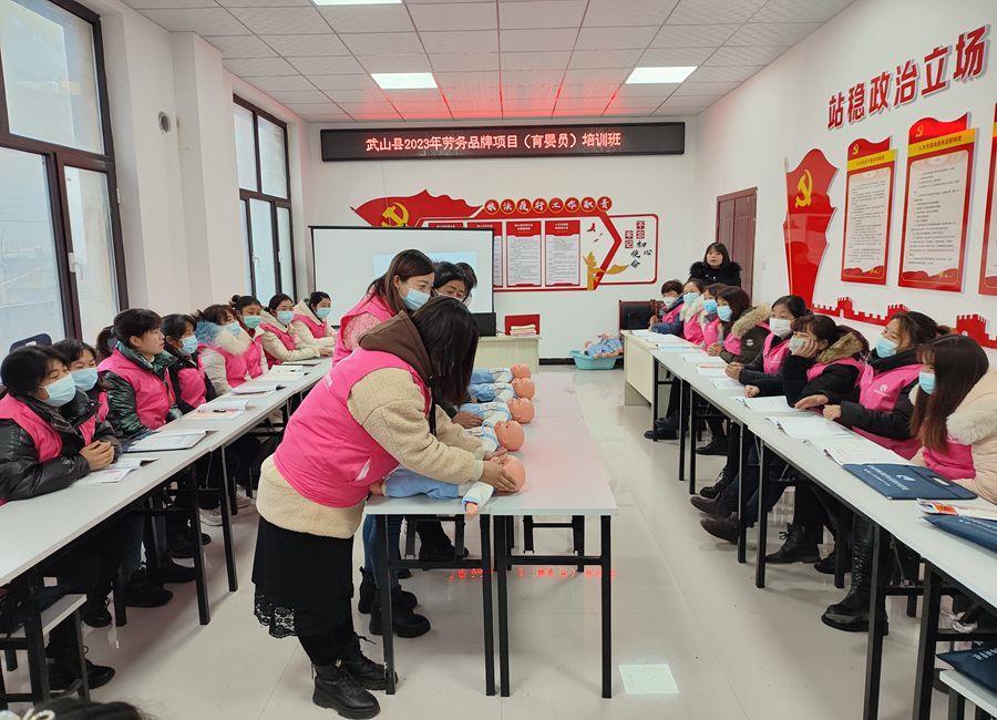 在武山县四门镇兰屲村村委会的活动室里,育婴师张老师正在结合幼儿护理、按摩、婴儿操等内容开展实操培训,对前来学习的学员进行了“面对面、手把手”的技能教学。