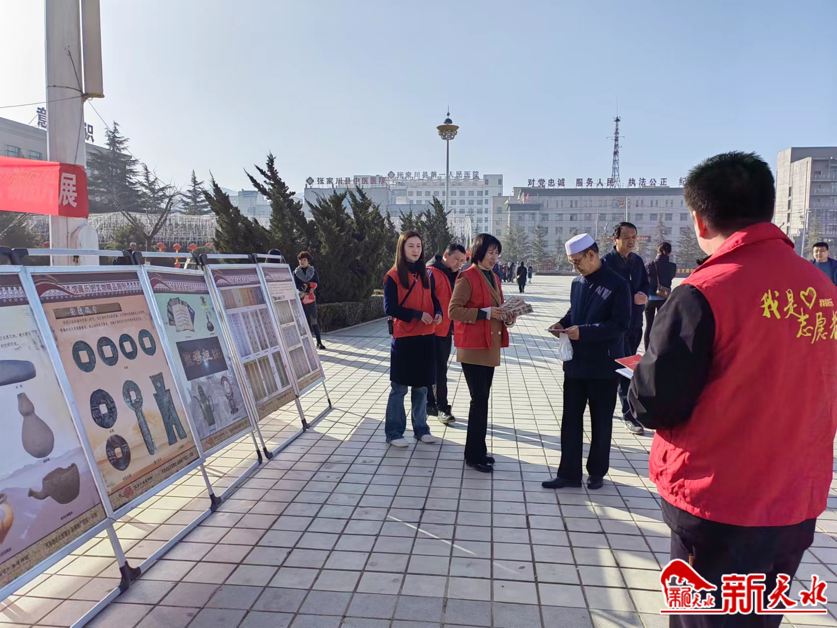 同时,张家川县博物馆组织开展了流动展览宣传活动。博物馆志愿者为现场群众提供咨询、讲解、发放宣传手册等志愿服务,志愿者细心的讲解,吸引大量群众驻足观看,听众们都露出了满意笑容,大家的笑容就是此次志愿服务最大的收获。