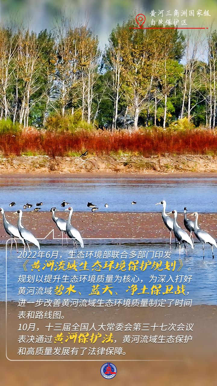 保护区实施一系列湿地修复工程,构建起科学合理的“取、蓄、输、用、排”水系格局,形成“河、陆、滩、海”入海循环主干道,打通了黄河与湿地间的“毛细血管”。