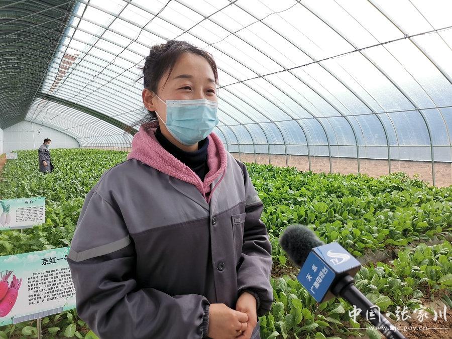 在刘堡镇高家村的中部蔬菜产业园区内,生菜、菠菜、萝卜等时令蔬菜已经长成上市,甘肃恒辰源生物科技有限公司的员工晋凡娟和她的同事们在大棚内采摘蔬菜。