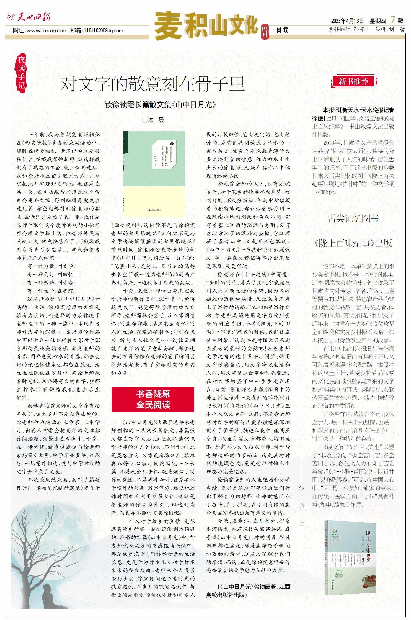 【书香陇原 全民阅读】对文字的敬意刻在骨子里|读徐祯霞长篇散文集《山中日月光》