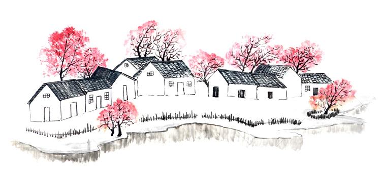 庭院与桃树并肩而立的景色,同时也构成了中国人爱与思念的家园底色。家园与桃树相互盘根错节,虬枝蔓生,如同勃然长起的一棵生命之树。这棵树将中国人乡愁、故园、寻根、追思的情感结为一体,守护和装点家园的桃园,也逐渐成了一个中国人走向远方时的回望之地。