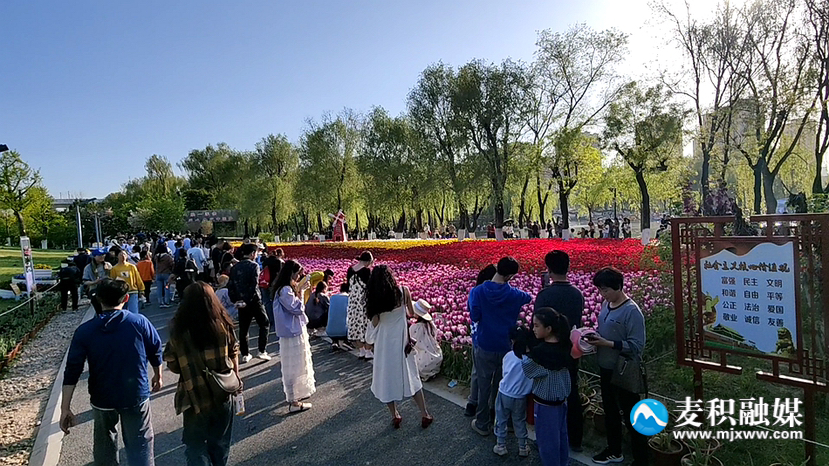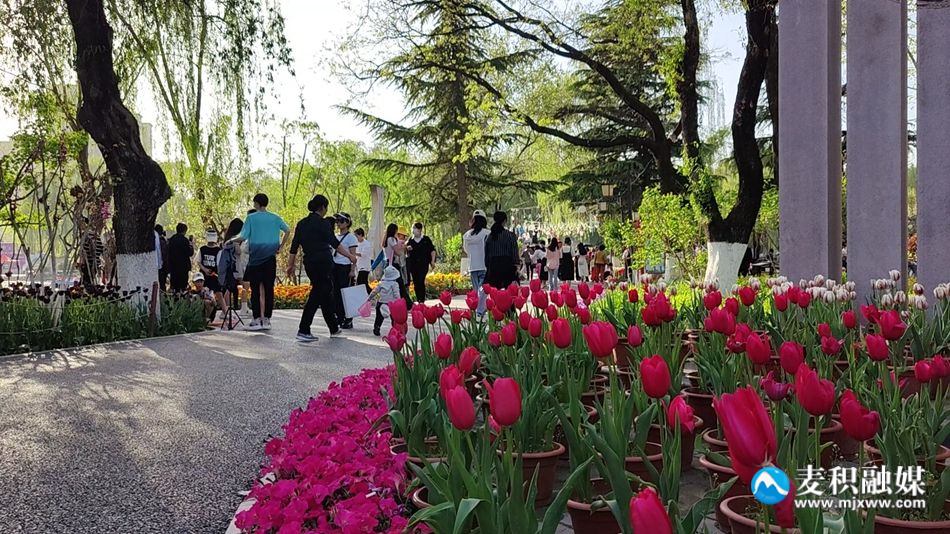 新天水讯 据麦积区融媒体中心消息(记者 董洁 莫哲涛 姚嘉琛)花海聚人海,春光无限美。郁金香主题花卉展期间的麦积区马跑泉公园在周末更是游人如织。随着连日来气温的逐步升高,园内的郁金香竞相绽放,姹紫嫣红,蔚为壮观,吸引了大量市民前来赏花游玩。