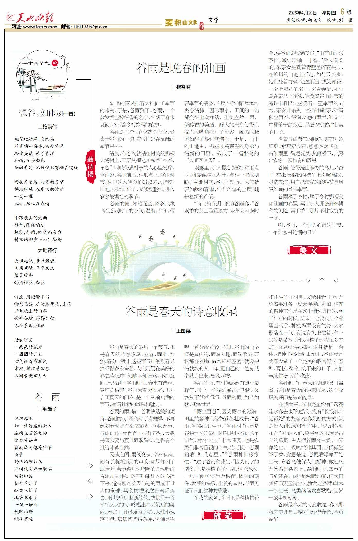 谷雨时节,春天的意趣依旧盎然。谷雨是春天的诗意收尾,这个收尾美好而充满正能量。