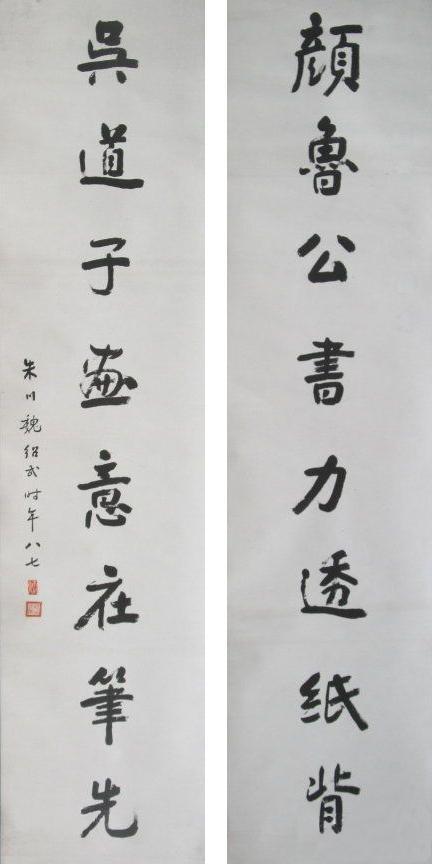 魏绍武先生书法楷、隶、行俱佳,书风高古、神韵独显。楷书端庄古雅,法度严谨。隶书清秀朴拙,舒展而又不张扬。行书是先生书法之最高成就,已达到了炉火纯青的艺术境界,在爽朗峻劲之风中尽显酣畅清逸之韵,观之如临仙山,如沐玉露。尤其晚年作品,干净清澈,人书俱老。凝望先生的作品,就好像凝望一棵根深叶茂的百年古树,充满沧桑、悠远之感。品读先生的书法,就好像品读一部博大精深的经典著作,深邃、厚重、浓淡的笔墨,反映着他坎坷曲折的人生经历,精良的书法,表露着他淡泊名利的高华人品。