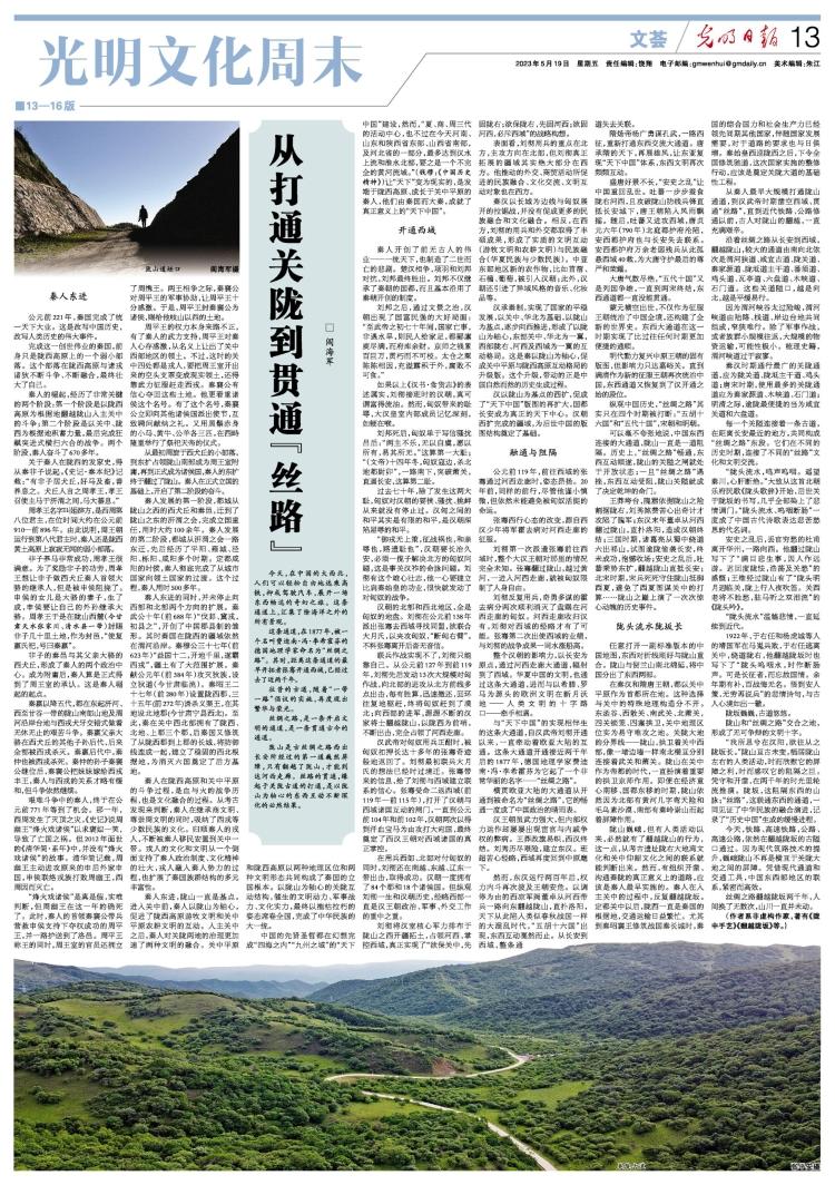 5月19日,《光明日报》副刊整版刊发非虚构作家阎海军文章《从打通关陇到贯通“丝路”》。