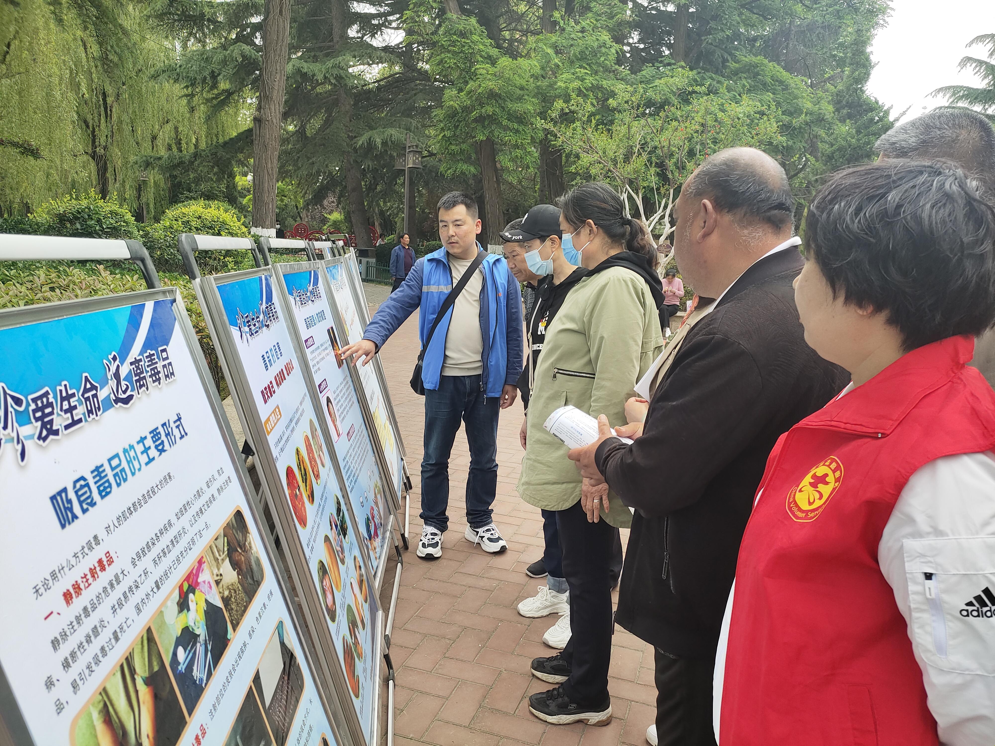 新天水讯 5月30日上午,大城街道光明巷社区新时代文明实践站组织志愿者在人民公园开展了“珍爱生命 拒绝毒品”禁毒宣传活动。