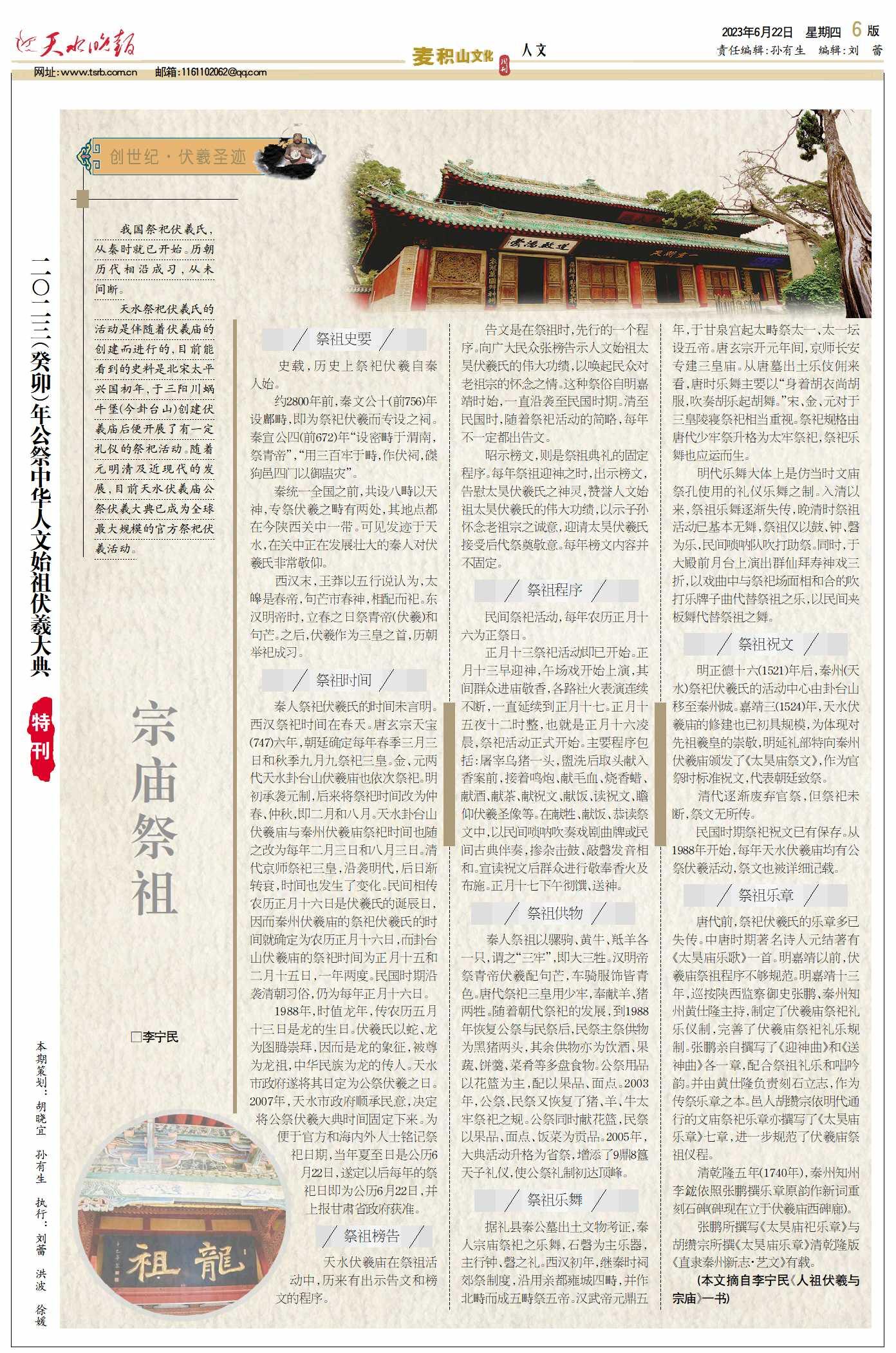 公祭伏羲大典·特刊|李宁民:宗庙祭祖