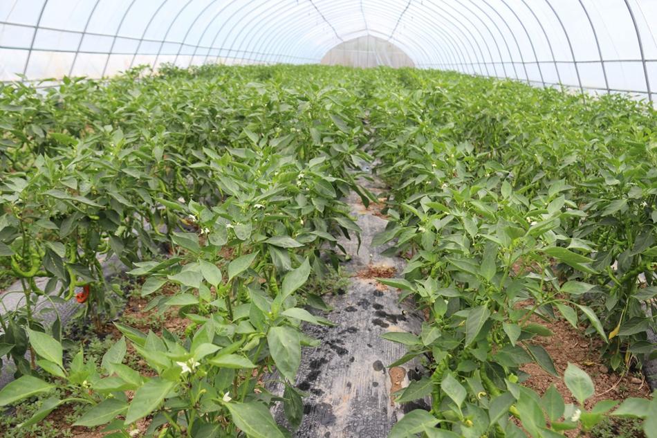 王新村党支部书记张保恒介绍说:“今年的发展壮大村集体经济,以三抓三促为抓手,主要以蔬菜大棚为目标,全村共在靖天路沿线共有钢架蔬菜大棚44座,目前第一批辣椒已经上市,预计一个棚是目前上市在500斤左右,按照4次的采摘量,一个棚的产量在两千斤左右,预计收入可达到三千元左右。”