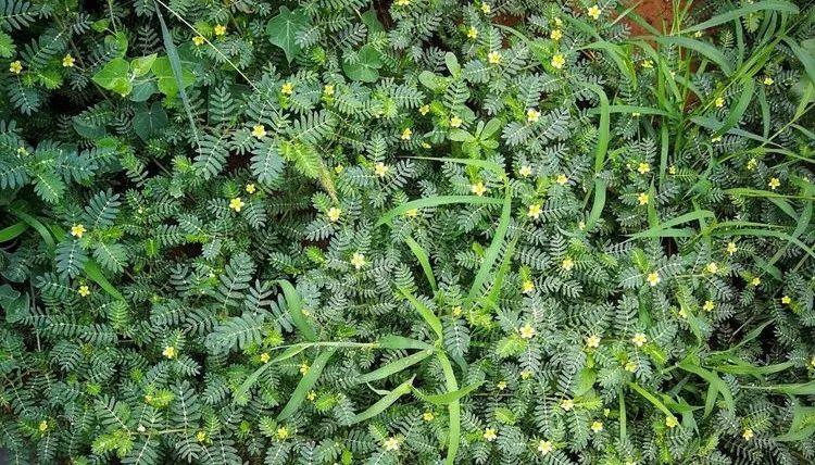 蒺藜的植株细弱,像撑不起自己远大抱负似的,平卧在地。自知“弱小”,懂得要团结,一丛丛挤得密实。