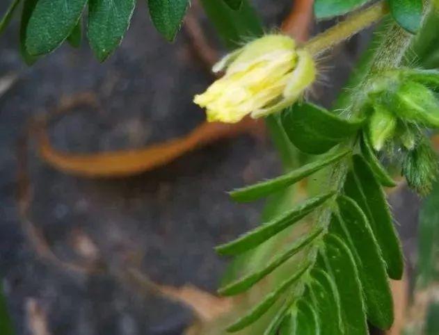 单看那黄色的五瓣小花,会觉得像委陵菜家的成员。再瞅瞅偶数羽状对生的小叶,就立马否定了之前的猜想。翻一下叶和茎,露出下面的小“刺球”,嗨,可不就是蒺藜嘛!