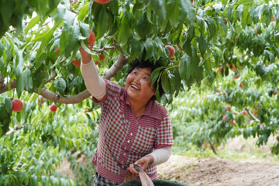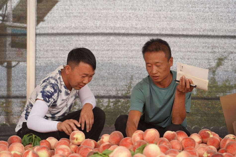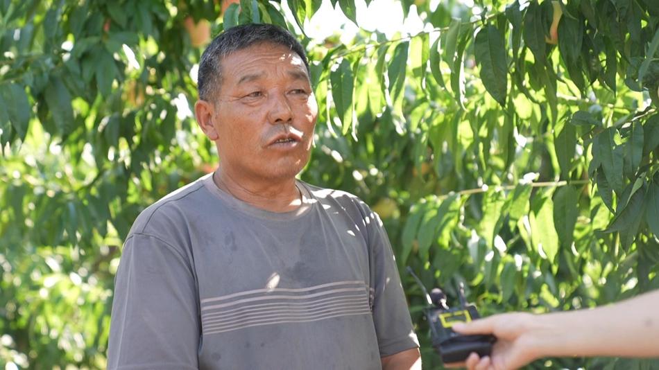 “我现在种桃子种了16亩,往年一亩地能产3000多斤,今年受了一点霜冻,但是今年的价位非常好,政府的电商在我院 子里收购,一斤收购价8元,估计收入比往年好一点,大概一万五六一亩地。”高喜太说道。