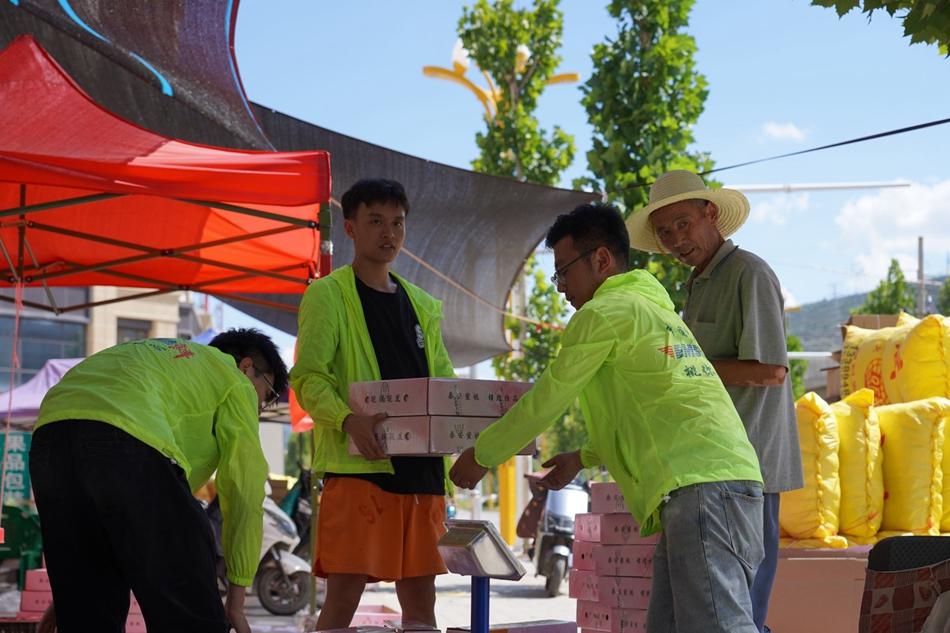 在郑川村邮政快递站,往来的快递车辆络绎不绝,工作人员们正忙着将一个个色相俱全的桃子装箱上车。近期,邮政快递也采用了空运,力求用最快速度将新鲜的桃子送到广大消费者手中。