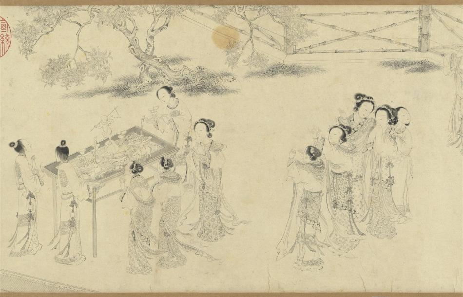 明·仇英 《乞巧图》卷(局部) 纸本水墨
