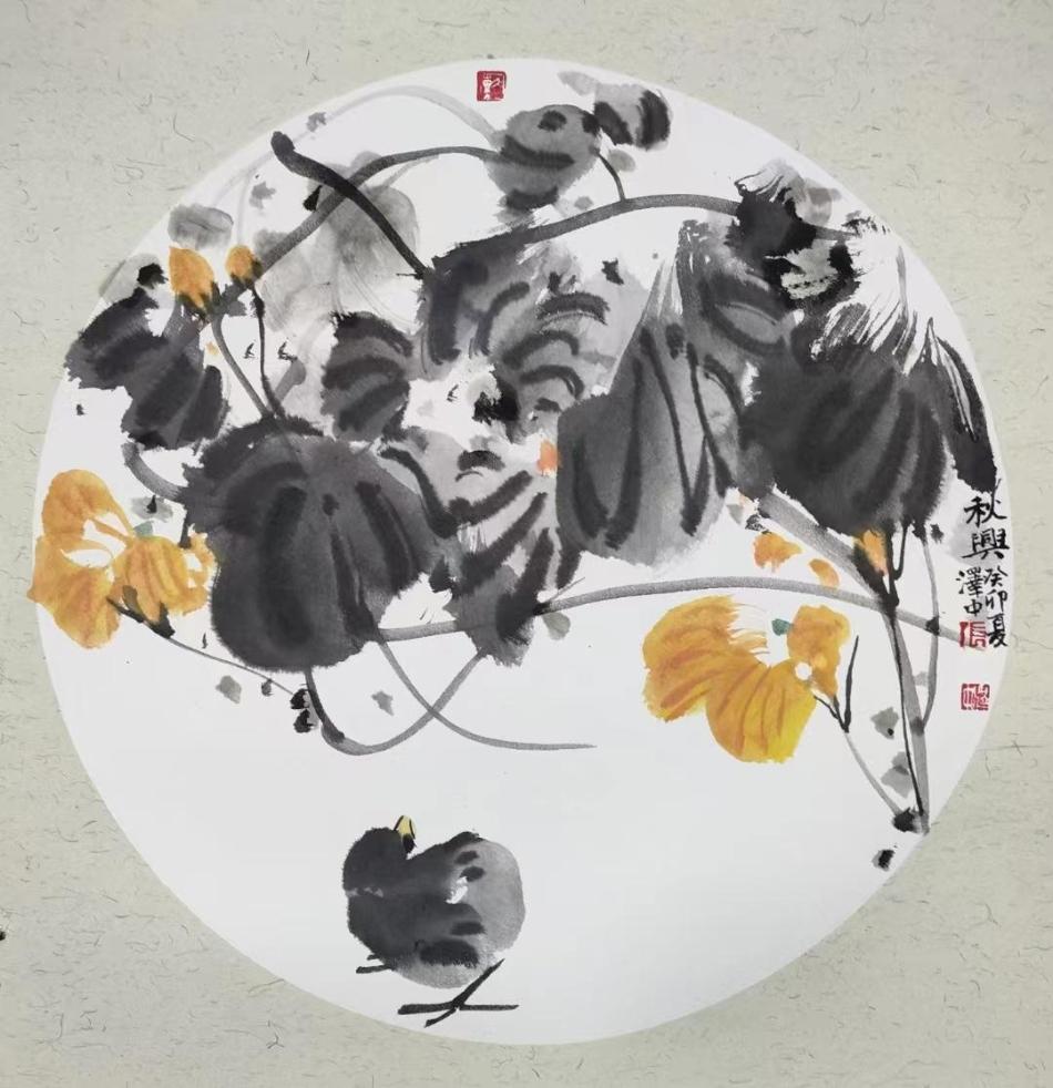 甘谷是历史文化大县,风景秀丽,人文荟萃。张泽中从小就生活在这片热土上,朱山的风,渭河的水,浸润着他的心田,滋养着他的灵魂,也激发着他创作的灵感。他背着画夹,行走于朱山渭水间,将他细致入微的观察、洞彻心扉的感受,记于心中,落于纸上,逐渐形成了只属于他自己的黄土画风。不论南山的奇石草原,北山的黄土高坡,还是普通的柴门庭院、小桥流水,抑或渐行渐远的古堡古树、旧瓦旧房,他都能艺术地落于他的画稿,或幽静淡雅,或酣畅淋漓,是情感的水墨,也是乡愁的小船。他忘情地沉醉于他的书画创作中,也尽情地享受着书画给他带来的乐趣。