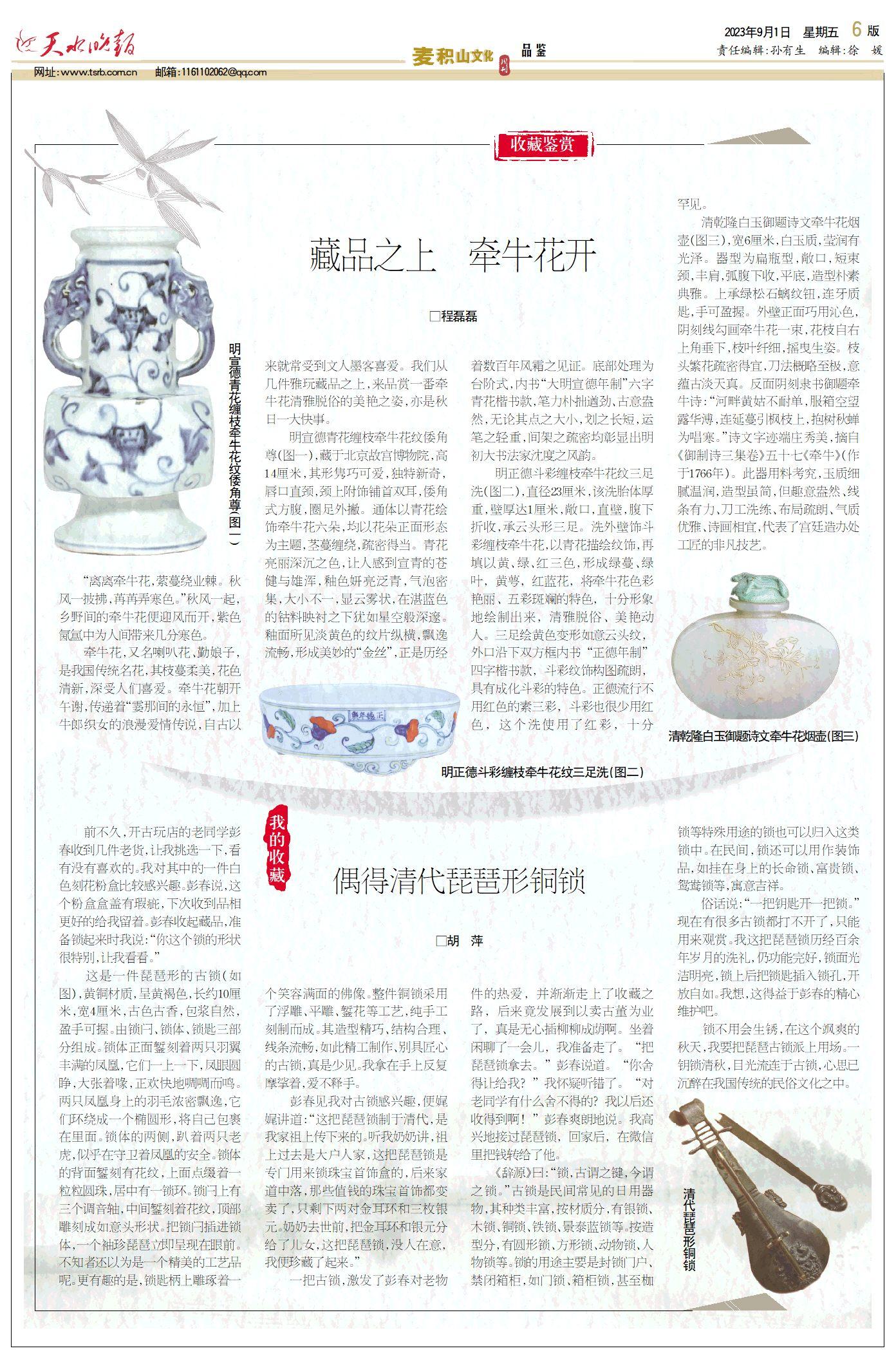 一把古锁,激发了彭春对老物件的热爱,并渐渐走上了收藏之路,后来竟发展到以卖古董为业了,真是无心插柳柳成荫啊。坐着闲聊了一会儿,我准备走了。“把琵琶锁拿去。”彭春说道。“你舍得让给我?”我怀疑听错了。“对老同学有什么舍不得的?我以后还收得到啊!”彭春爽朗地说。我高兴地接过琵琶锁,回家后,在微信里把钱转给了他。