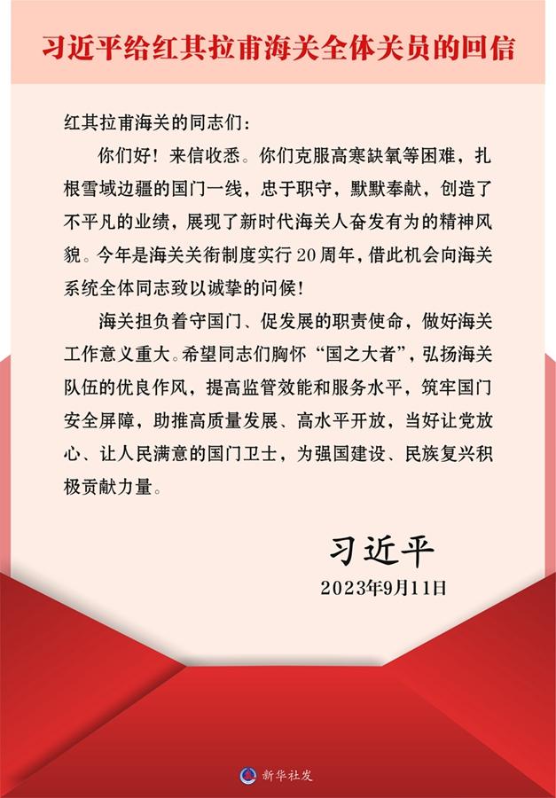 习近平给红其拉甫海关全体关员的回信