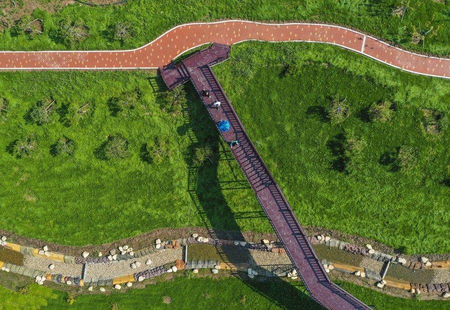 △游人在吉林长春市九台区清水村千亩苗木花卉休闲旅游观光产业园区参观游览。